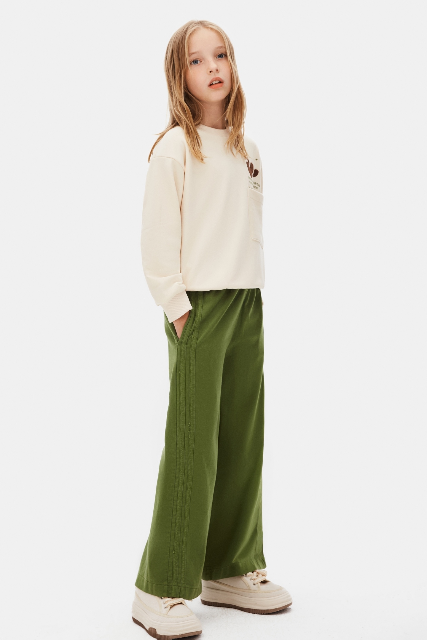 تجمع هذه السترة للبنات بين الراحة والمظهر العصري، مما يجعلها مثالية للاستخدام اليومي. تتميز بلون كريمي وتصميم بسيط، مما يجعلها تتناسب بسهولة مع أي أسلوب. تحتوي السترة على ياقة دائرية وأكمام طويلة لتوفير راحة إضافية. كما يوجد جيب صغير في الأمام مع نقش فريد يضيف لمسة أنيقة. لا تحتوي على قبعة أو سحّاب، مما يجعلها مناسبة للإطلالات الرياضية والكاجوال.