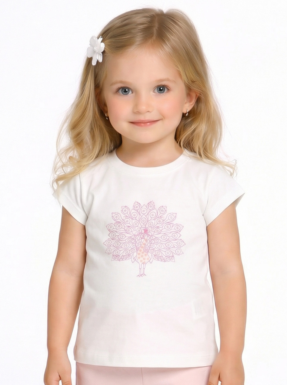 Bu kız çocuk tişörtü, hafif ve rahat yapısıyla bahar için ideal günlük kullanıma uygundur. Pembe tavus kuşu deseni ve kısa kollu bisiklet yaka tasarımıyla küçük kızların favorisi olacak. Rahatlığı keşfetmek için hemen göz atın.