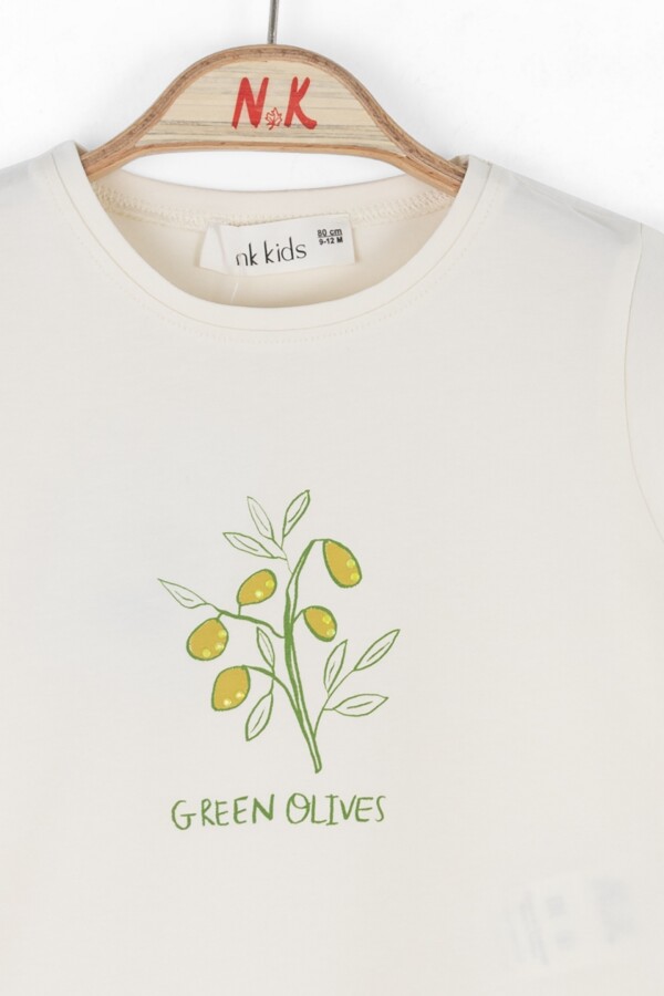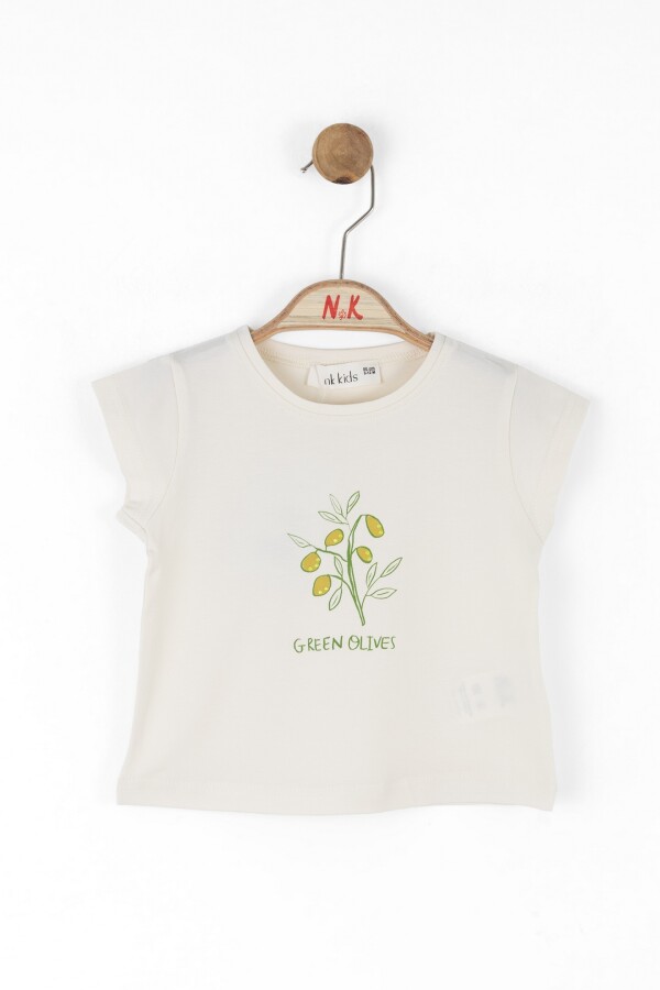 هذا التي شيرت الجذاب للأطفال البنات يتميز بتصميم خفيف مثالي لارتدائه في فصل الصيف. لونه الكريمي يتناسب مع أي بنطلون أو تنورة، بينما يضيف تصميم غصن الزيتون على الجهة الأمامية لمسة ساحرة.