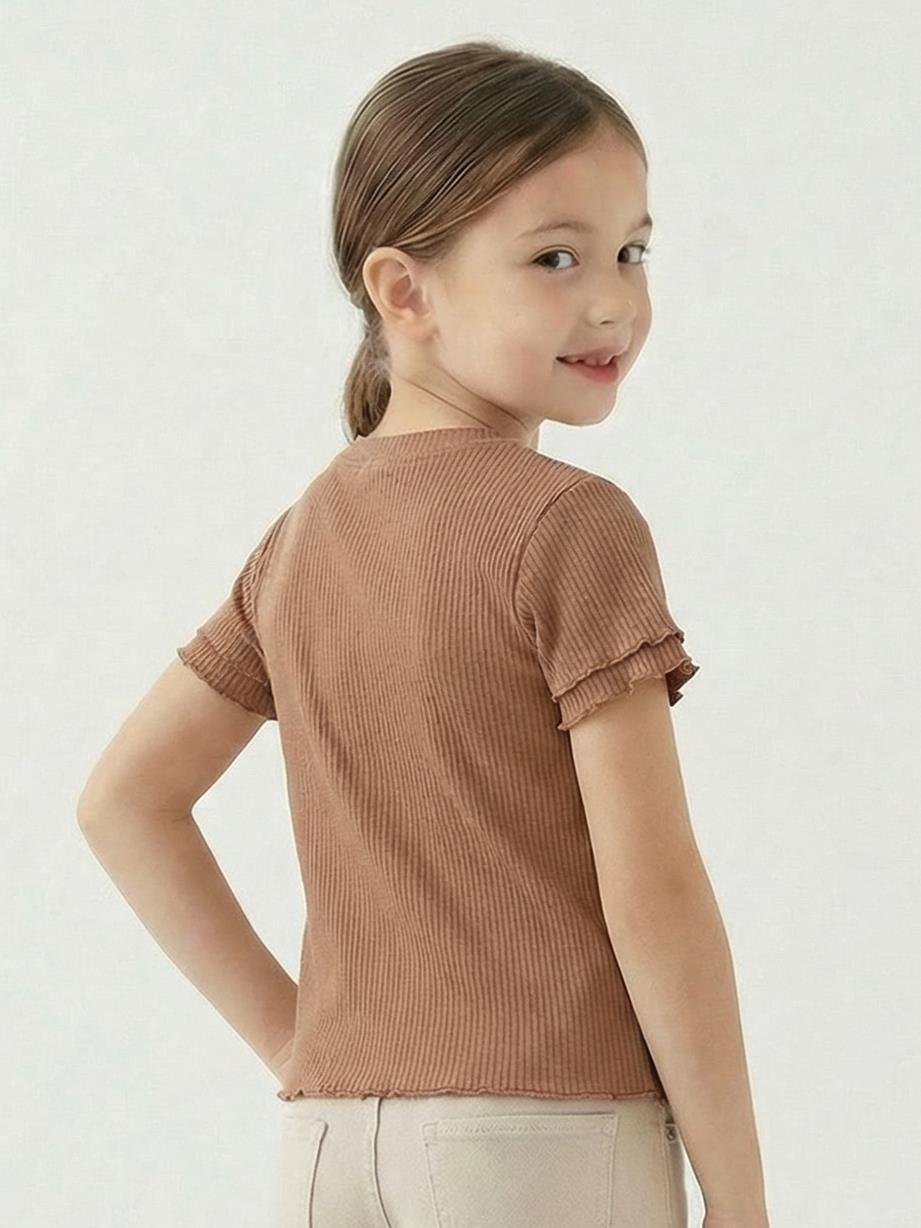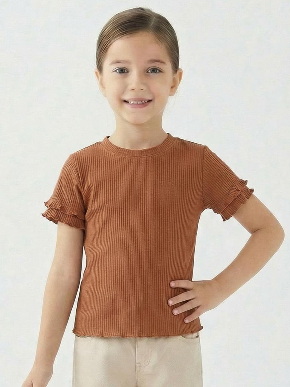Kız Çocuk Tişort 5-14 Yaş 36156 Kahverengi
