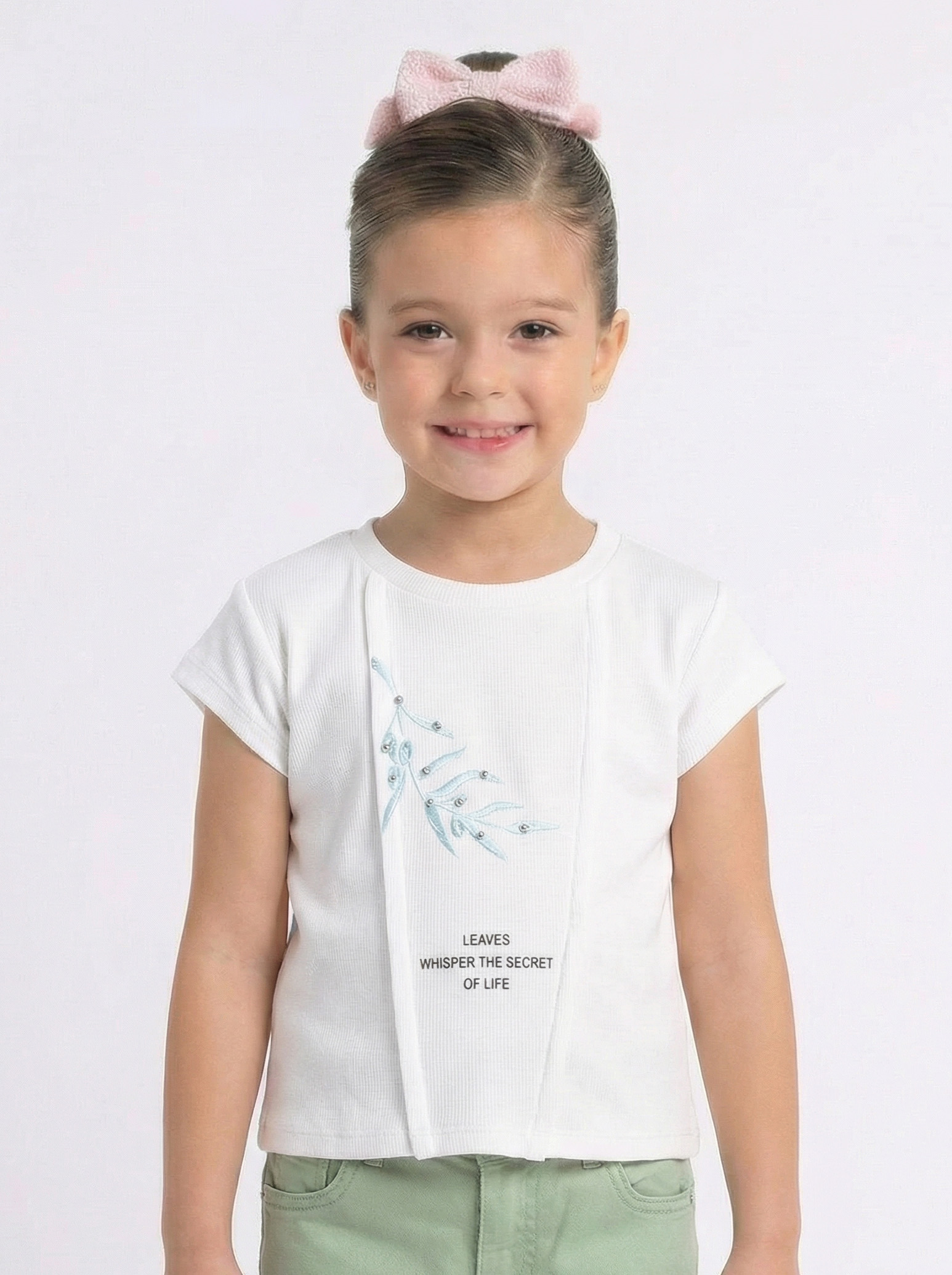 هذا التي شيرت الأنيق للفتيات يقدم أناقة مريحة لأيام الصيف. مصنوع من قماش ناعم وخفيف، يضمن لطفلك الشعور بالراحة طوال اليوم. يضيف الطباعة الأنيقة للأوراق والتفاصيل اللامعة لمسة فريدة للتي شيرت.