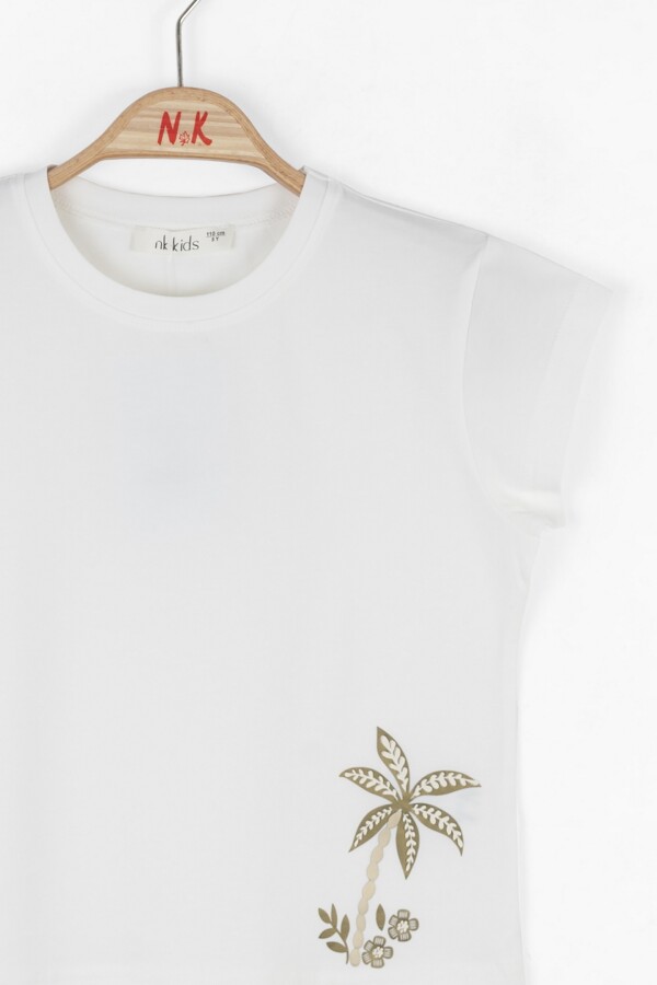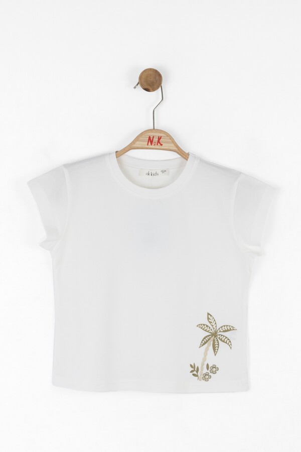 Çocuklar için tasarlanmış bu şık tişört, yaz günlerinin vazgeçilmezi olacak. Ekru rengiyle her türlü alt giysiyle rahatça kombinlenebilir. Kısa kollu tasarımı ve bisiklet yaka detayı, rahat bir kullanım sunarken, ön kısmındaki palmiyeli desen ile şıklığını artırıyor.