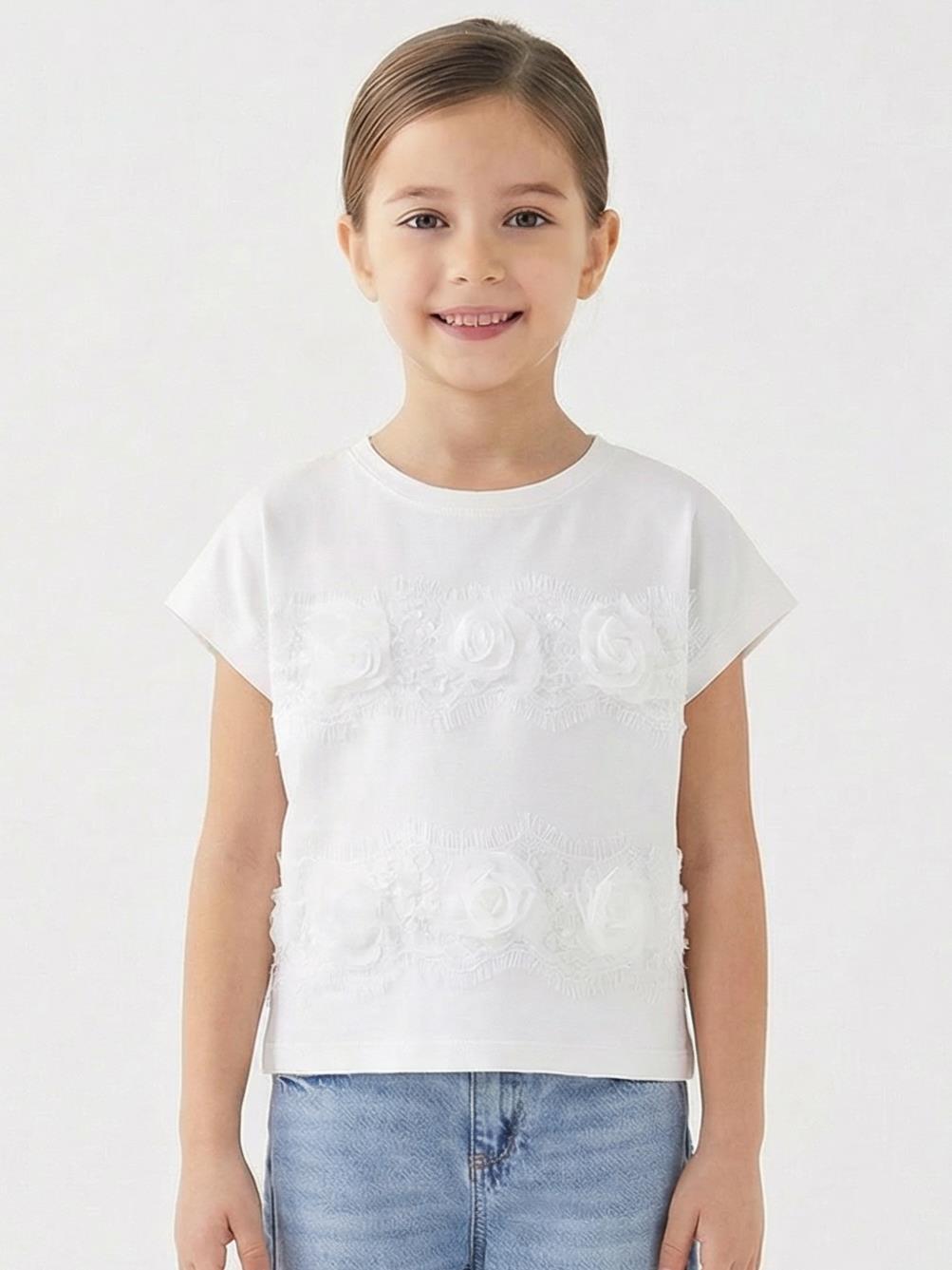 Kız Çocuk Tişört 5-9 Yaş 36006 Beyaz
