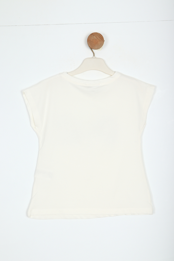 Bu şık kız çocuk tişörtü, beyaz renkte ve rahat kesimiyle günlük kullanım için idealdir. Kısa kollu ve bisiklet yaka tasarımı sayesinde hareket özgürlüğü sağlar. Ön yüzünde mavi ve beyaz tonlarında payet işlemeli büyük bir fiyonk motifi yer almaktadır. Sade ve zarif görünümü ile hem spor hem de günlük kombinler için uygundur.