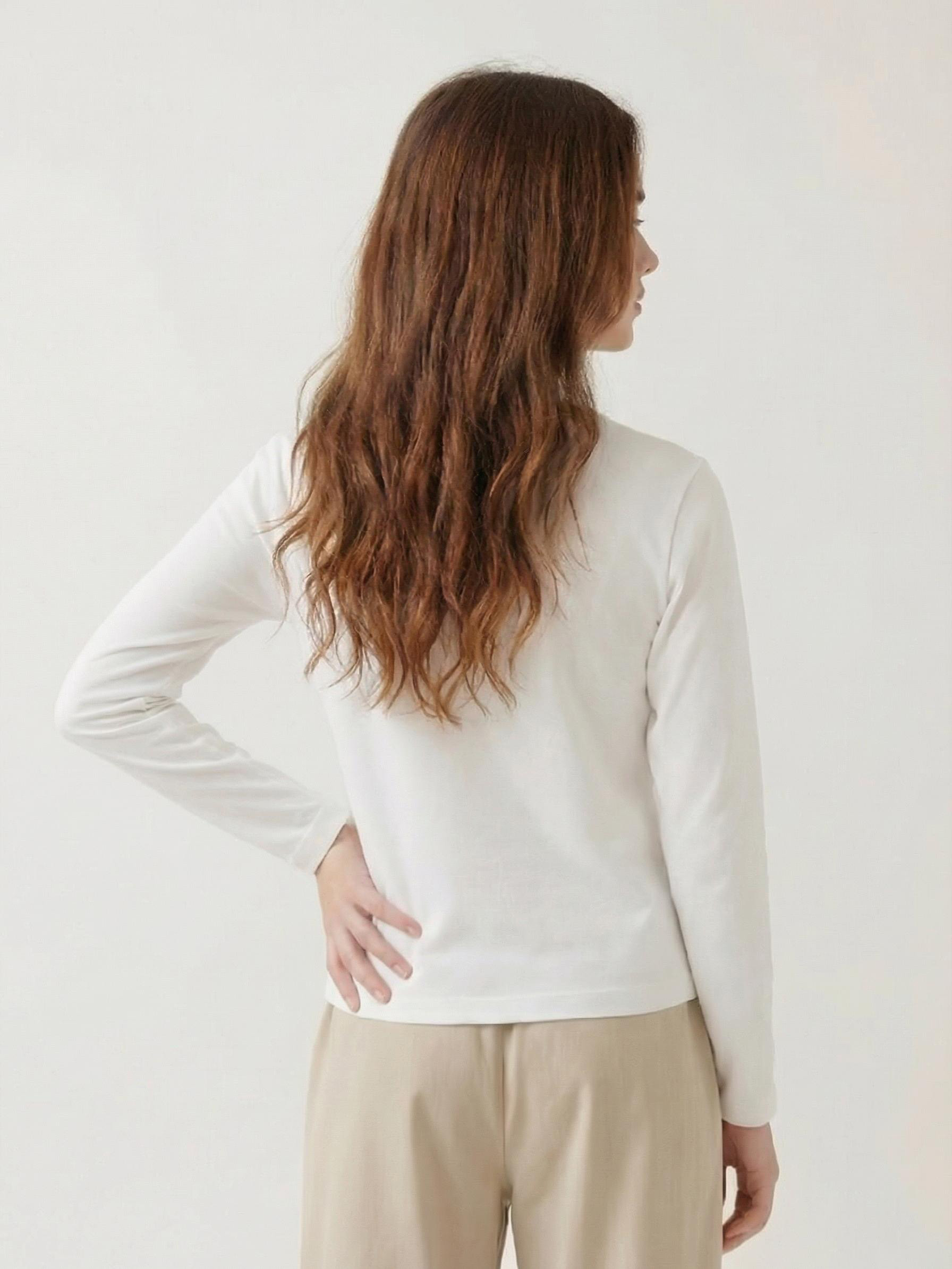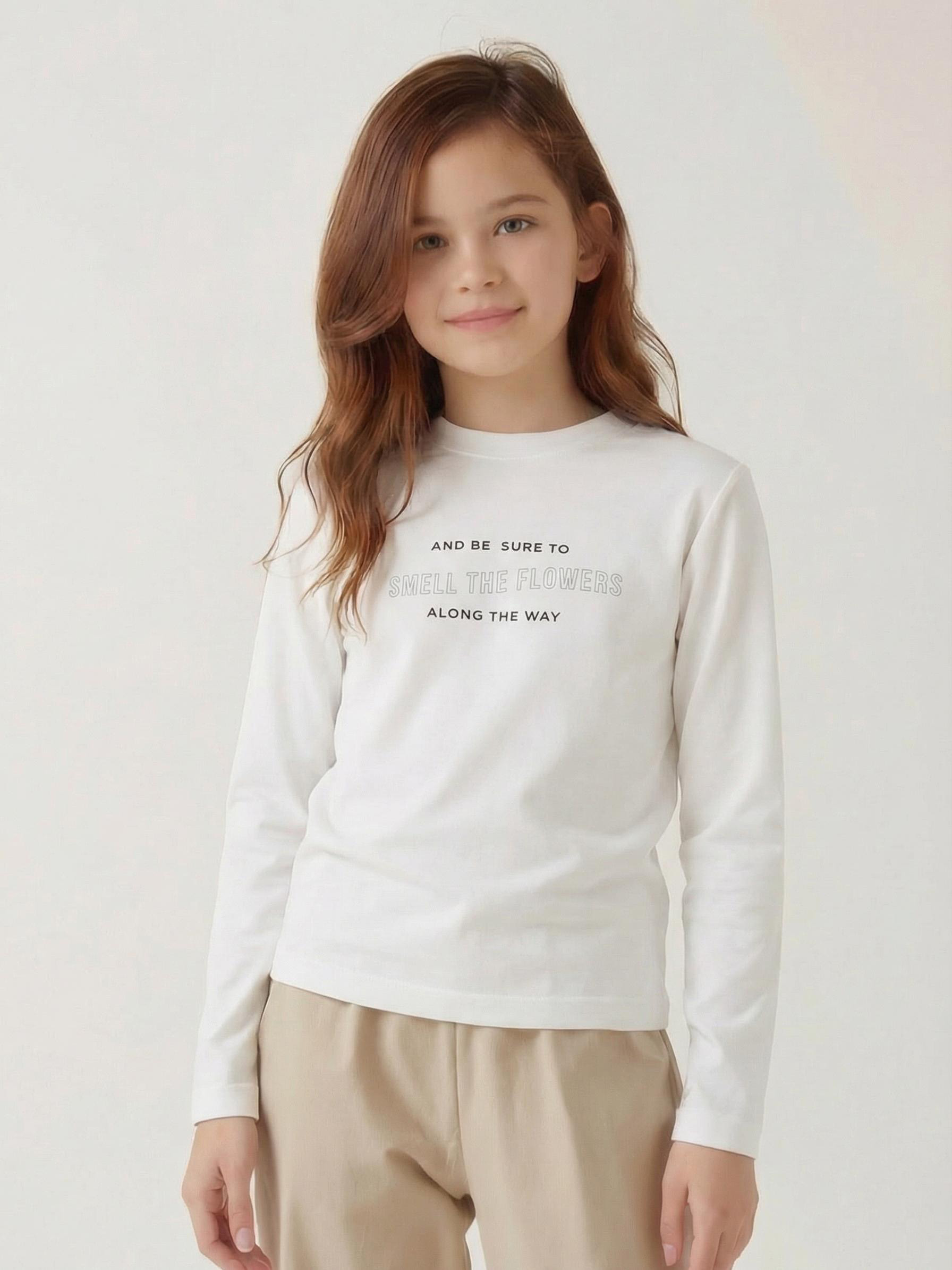 Bu kız çocuk tişörtü, kış sezonu için ideal bir tercihtir. Ekru renginde, uzun kollu ve bisiklet yakalı sade tasarımıyla günlük kullanıma uygundur. Önde yer alan İngilizce yazı detayı tişörtü özgün kılar. Kapüşon ve fermuar bulunmaz, cepli veya kordonlu değildir. Rahat kesimi ve yumuşak kumaşı sayesinde çocukların konforunu ön planda tutar.