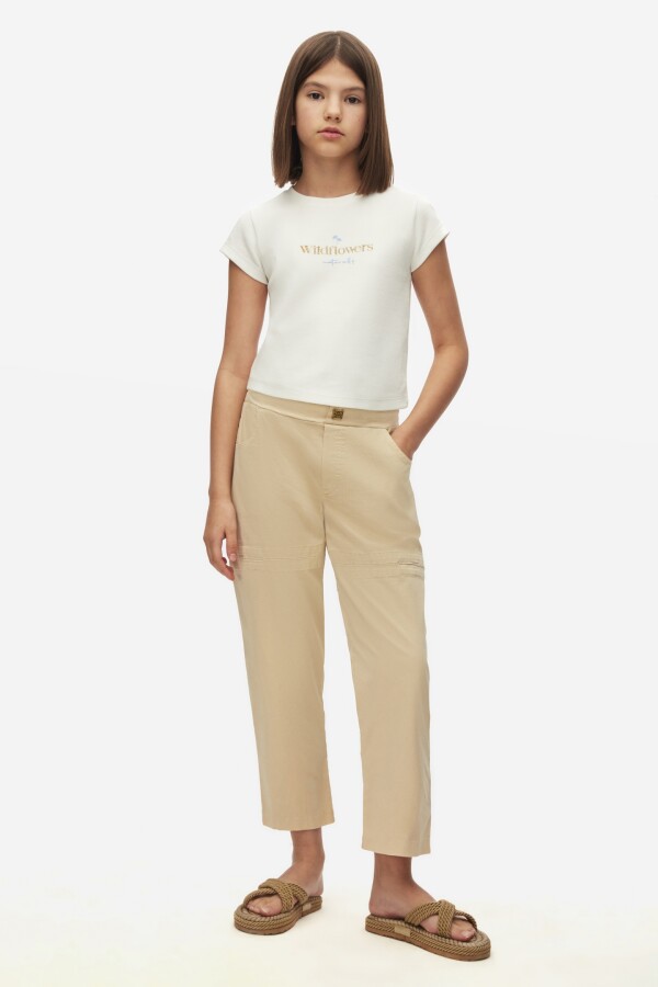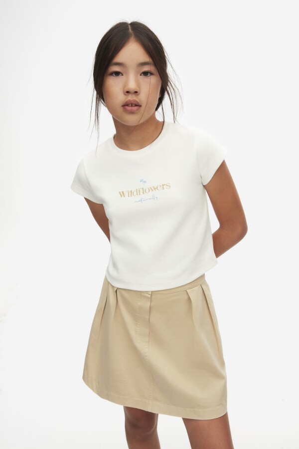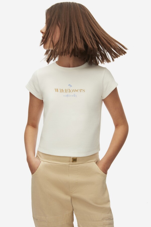 Bu şirin kız çocuk tişörtü, yaz aylarında rahat ve şık bir seçenek sunuyor. Ekru rengindeki tişört, "Wildflowers" yazısıyla süslenmiş ve doğal bir görünüm kazandırıyor. Kısa kollu tasarımı, hareket özgürlüğü sağlarken, klasik bisiklet yaka kesimi ile şıklığını artırıyor.