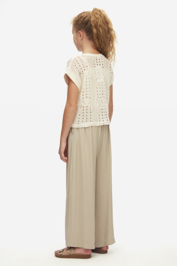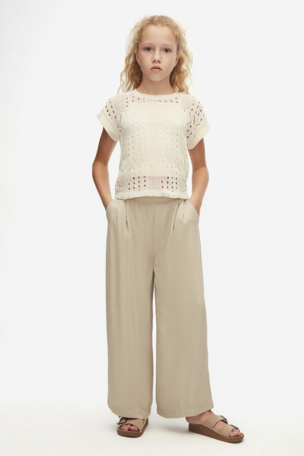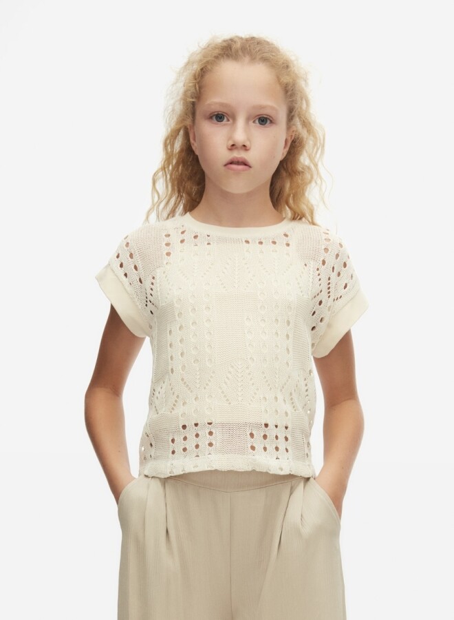 Bu şık kız çocuk tişörtü, hafif dokusu ve modern tasarımı ile yaz aylarının vazgeçilmezi. Krem rengi, her türlü pantolon veya etekle mükemmel uyum sağlar. Kısa kollu yapısı ile rahat bir kullanım sunar.