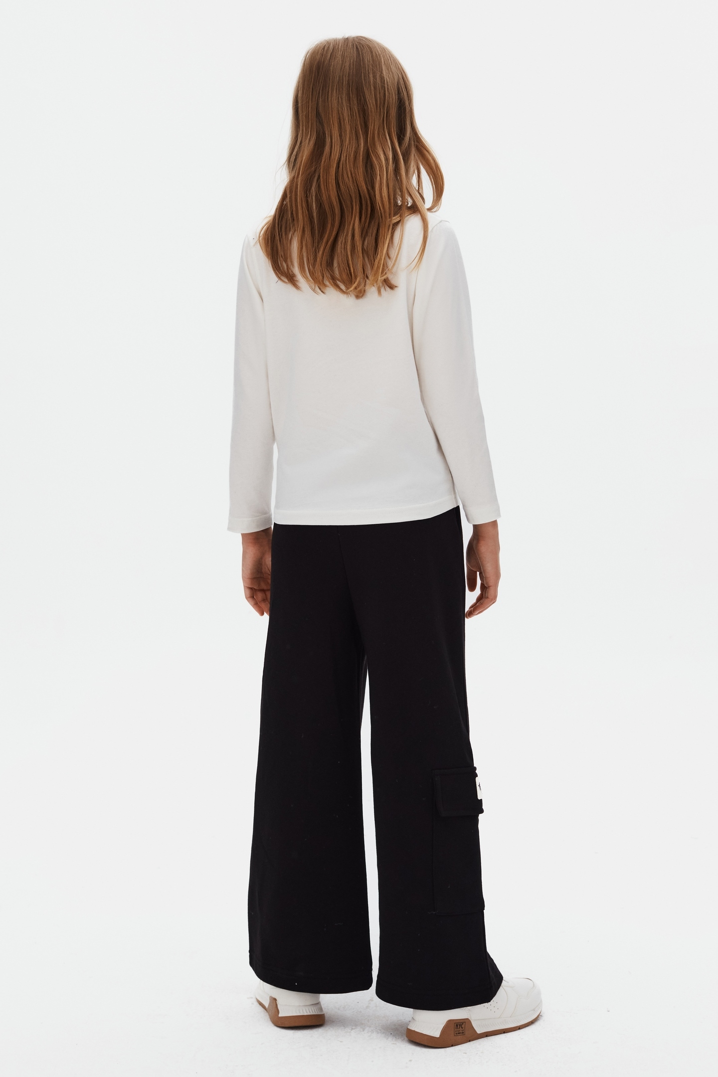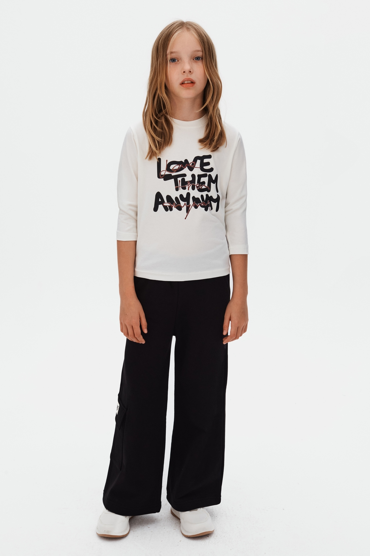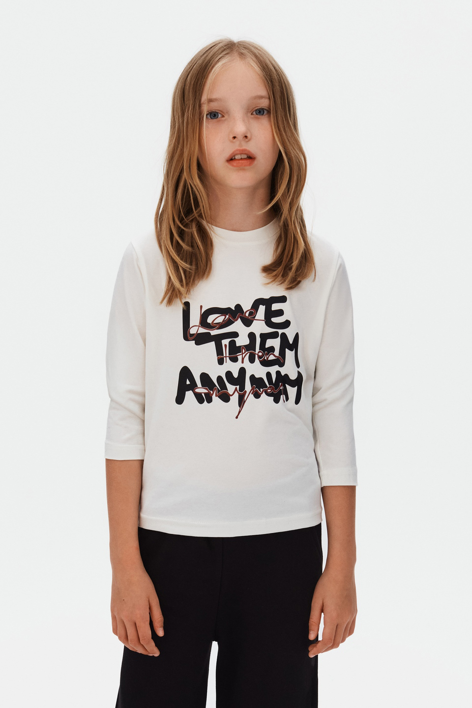 Bu kız çocuk tişörtü, rahat ve şık tasarımıyla günlük kullanıma uygundur. Üst kısmında koyu siyah ve kırmızı renklerde dikkat çekici bir baskı yer alır. Tişört, uzun kollu olup, boyun kısmı bisiklet yaka olarak tasarlanmıştır. Rahat kesimi ve kısa boyu sayesinde hareket özgürlüğü sunar. Ekru rengindeki bu tişört, farklı yaş gruplarındaki çocuklar için idealdir.
