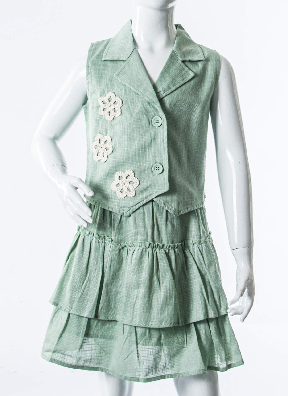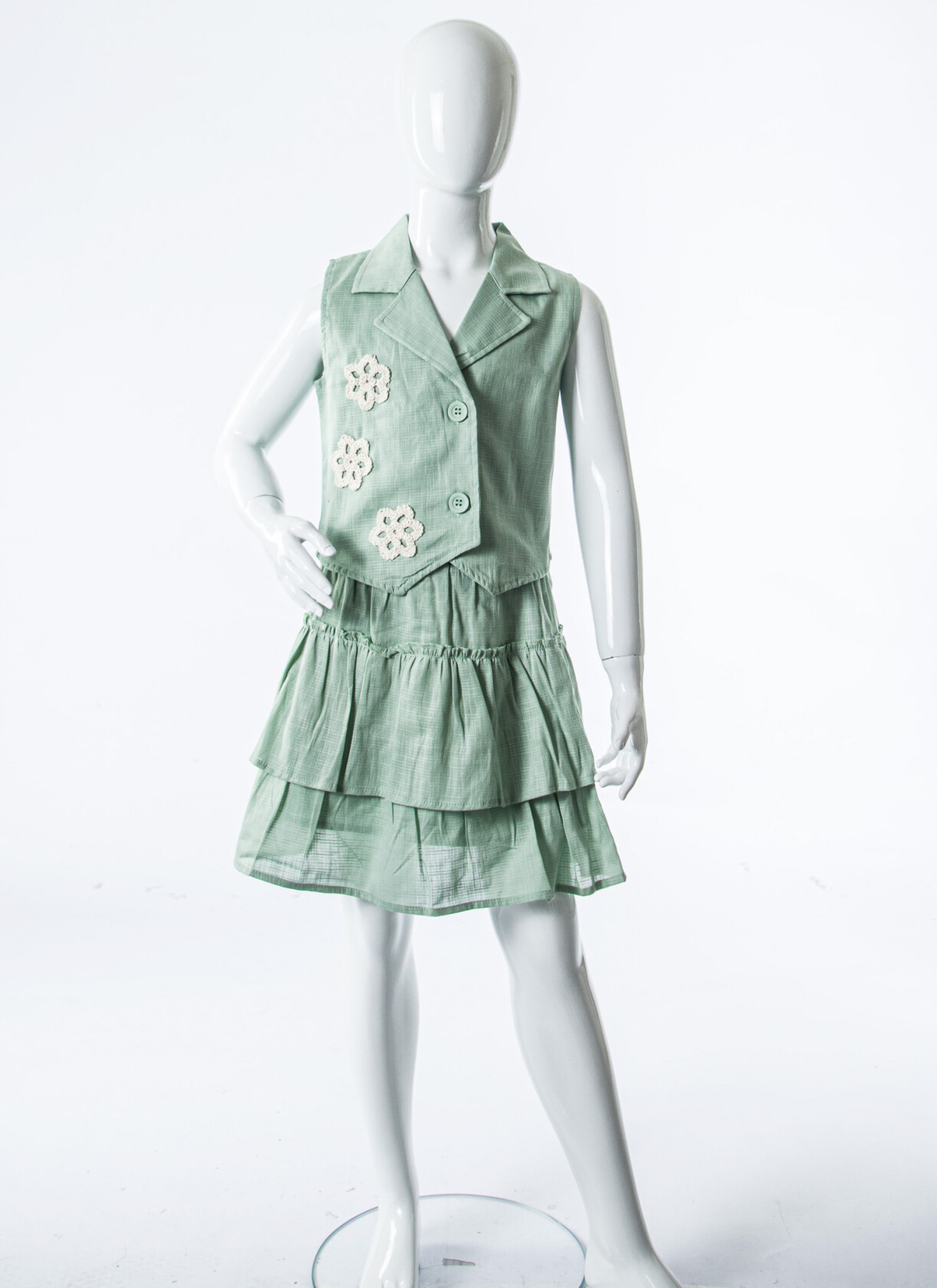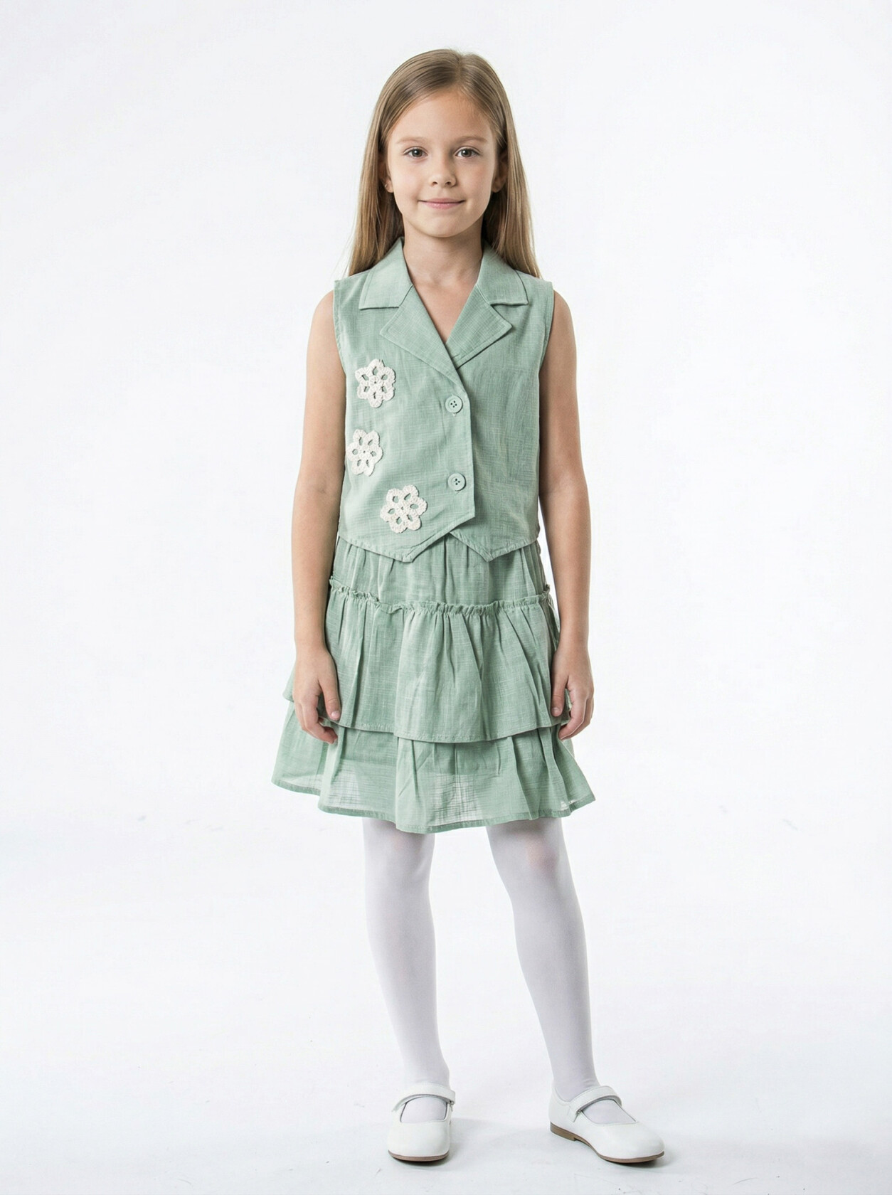 - Katmanlı etek tasarımı, şirin detaylarla zenginleştirilmiş.