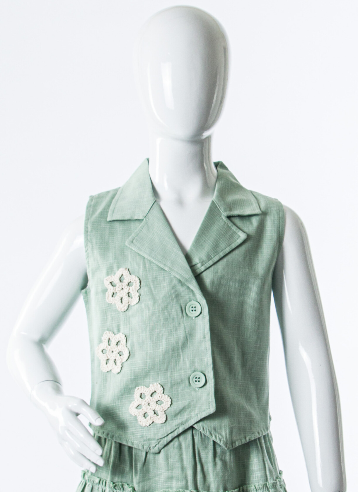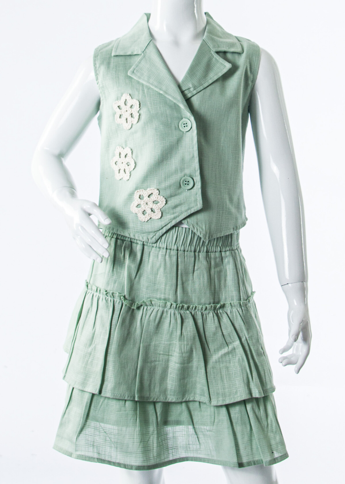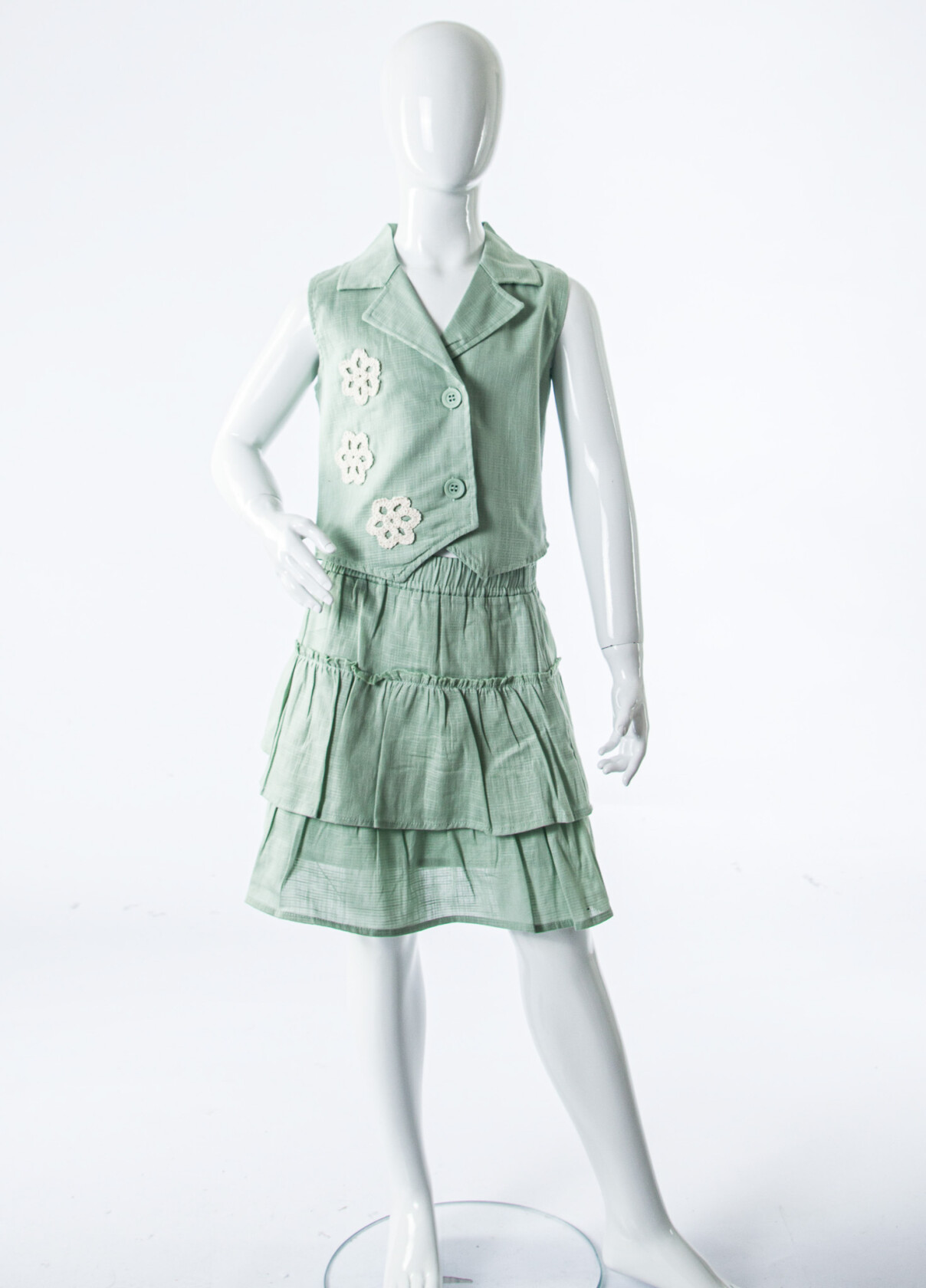- Katmanlı etek tasarımı, şirin detaylarla zenginleştirilmiş.