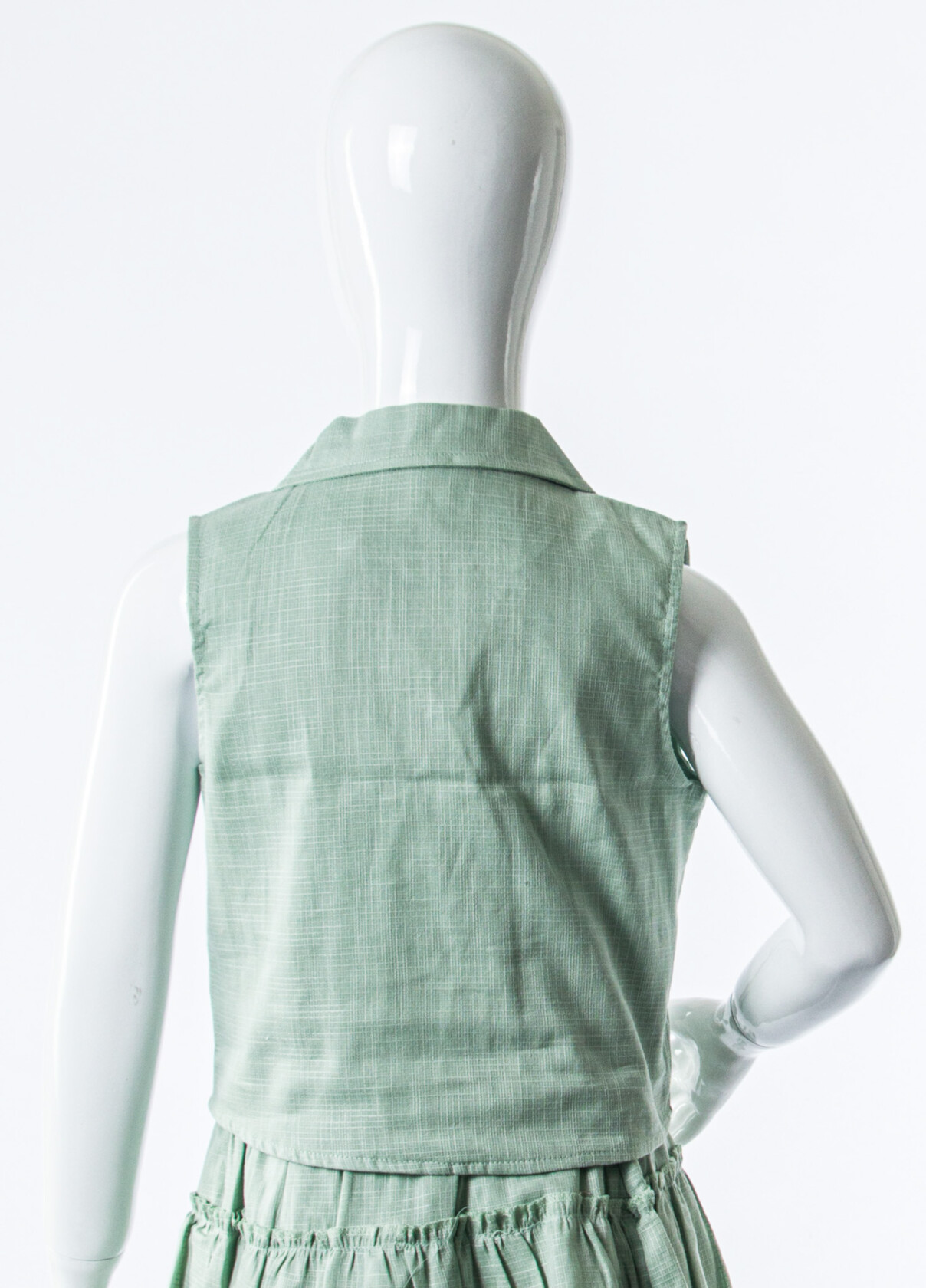 - Gömlek tarzı üst, düğmeli kapama özelliğine sahip.