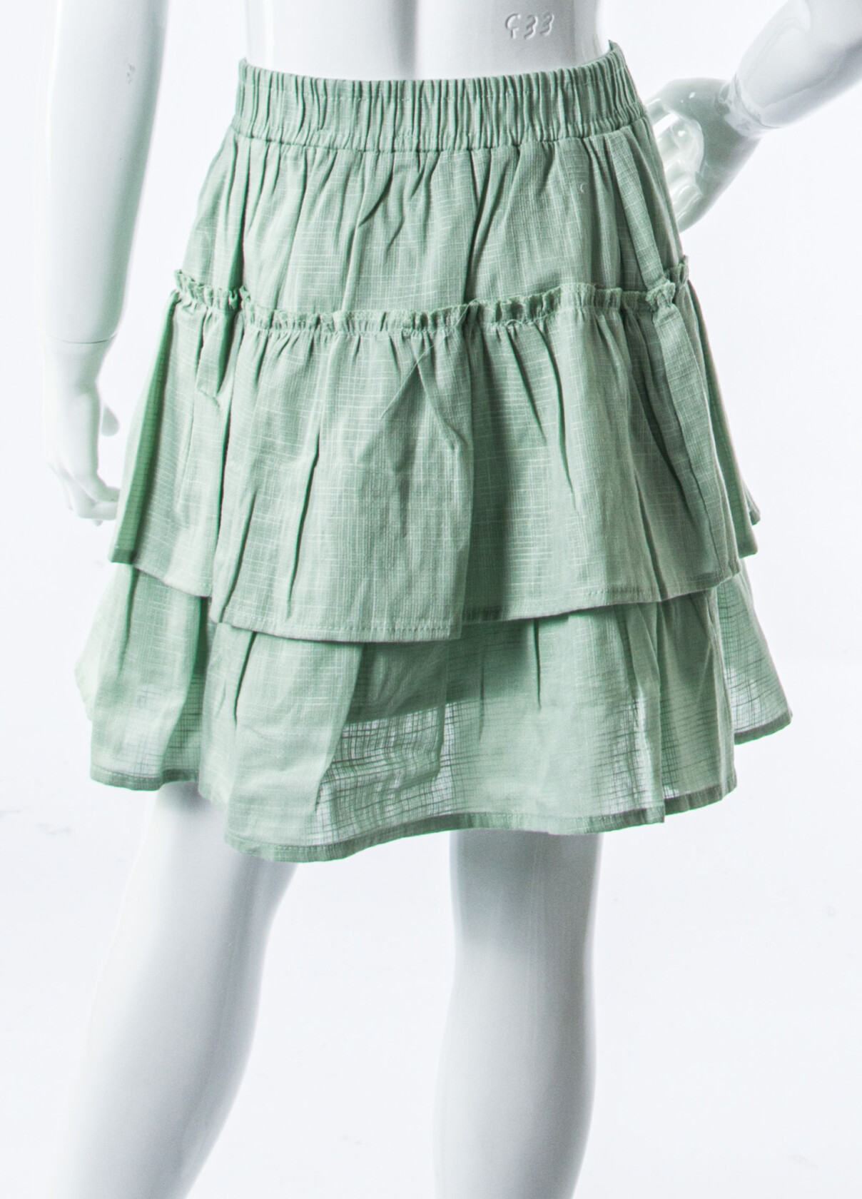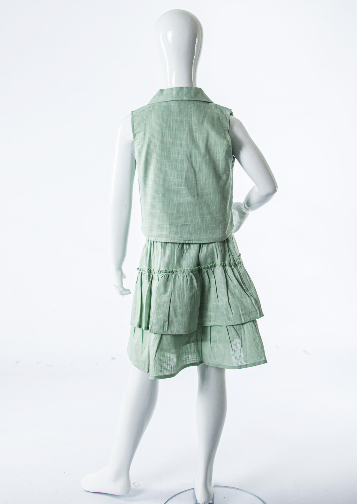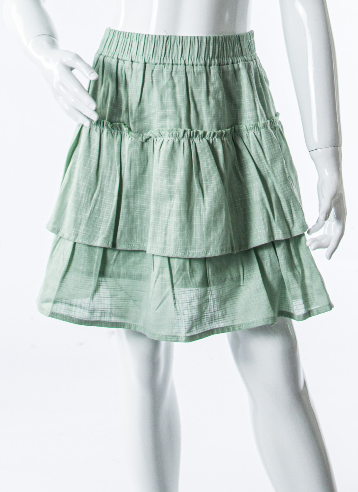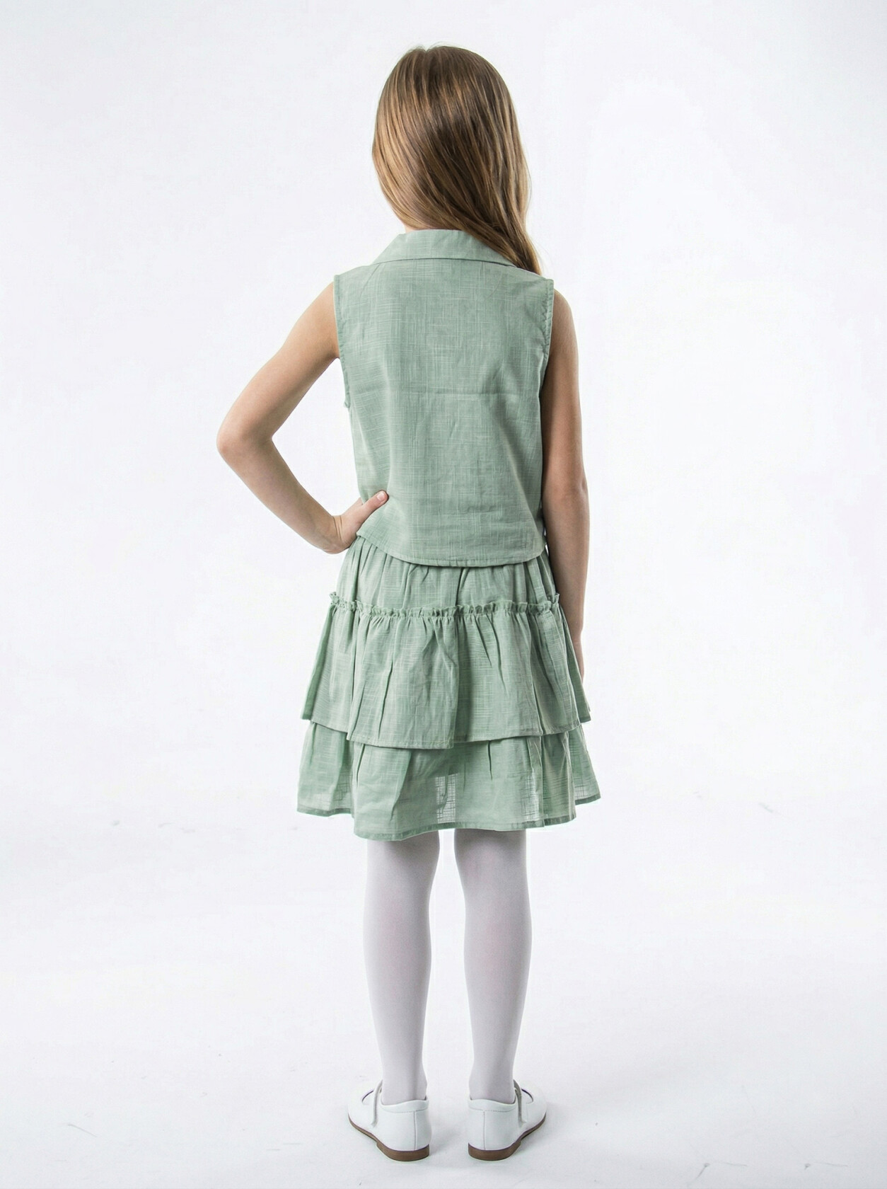 - Etek uzunluğu: Diz hizasında, katmanlı görünüm.