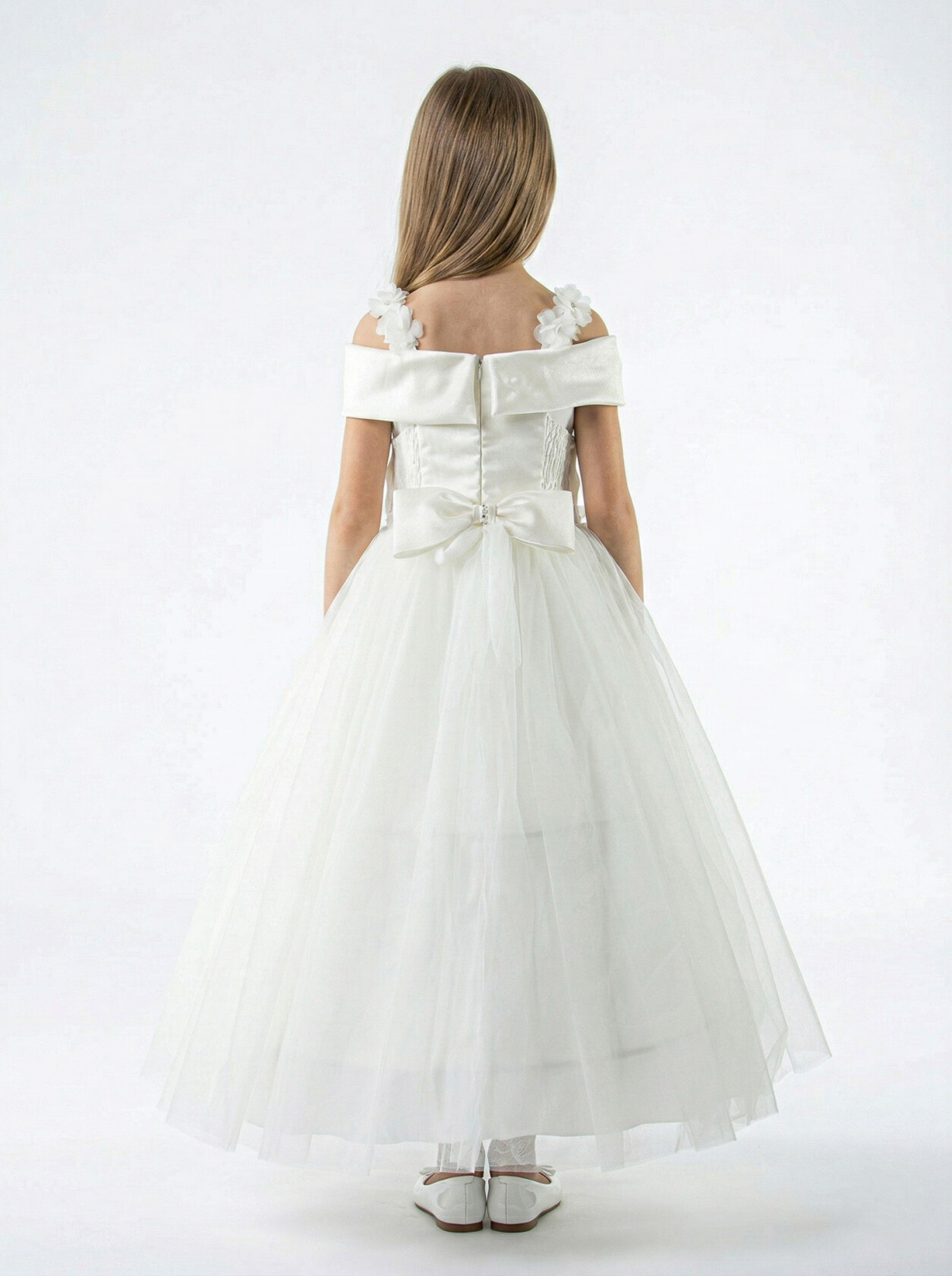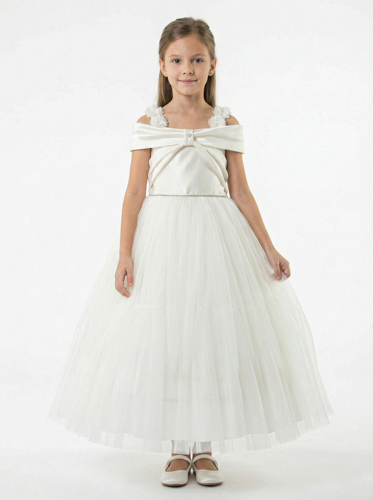 Kız Çocuk Yazlık Abiye Elbise 7-11 Yaş 3070 Beyaz