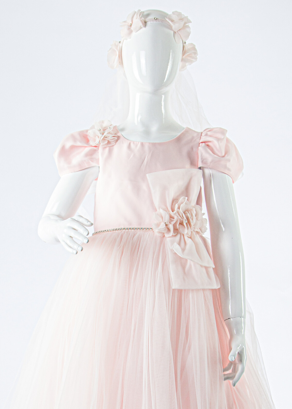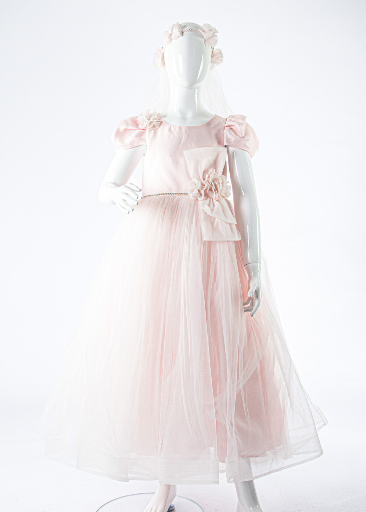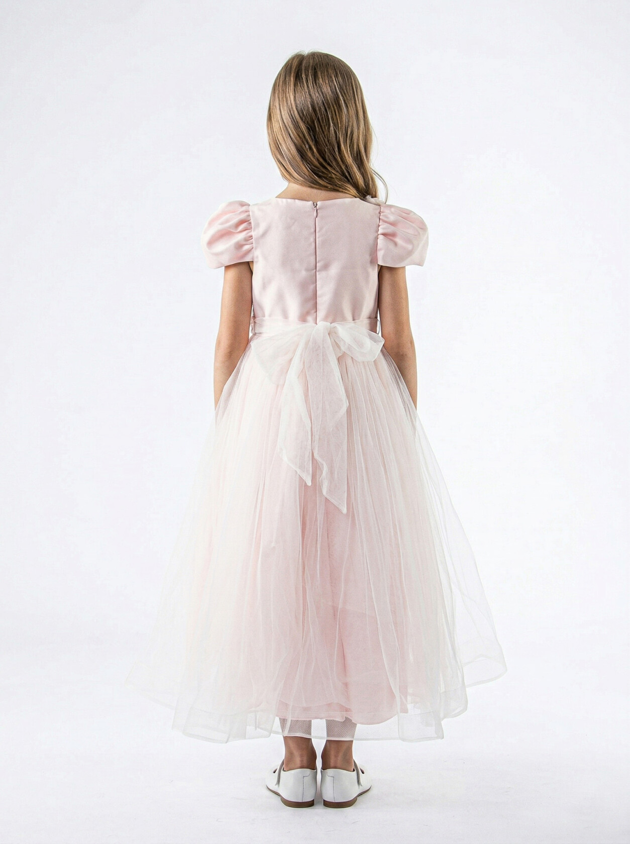 Bu zarif elbise, özel günlerde kız çocuklarının şıklığını ve rahatlığını ön planda tutarak tasarlanmıştır. Yumuşak kumaşı sayesinde hareket özgürlüğü sunarken, şık detaylarıyla da göz alıcı bir görünüm sağlar.