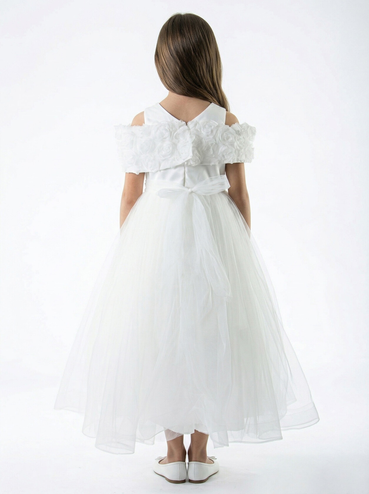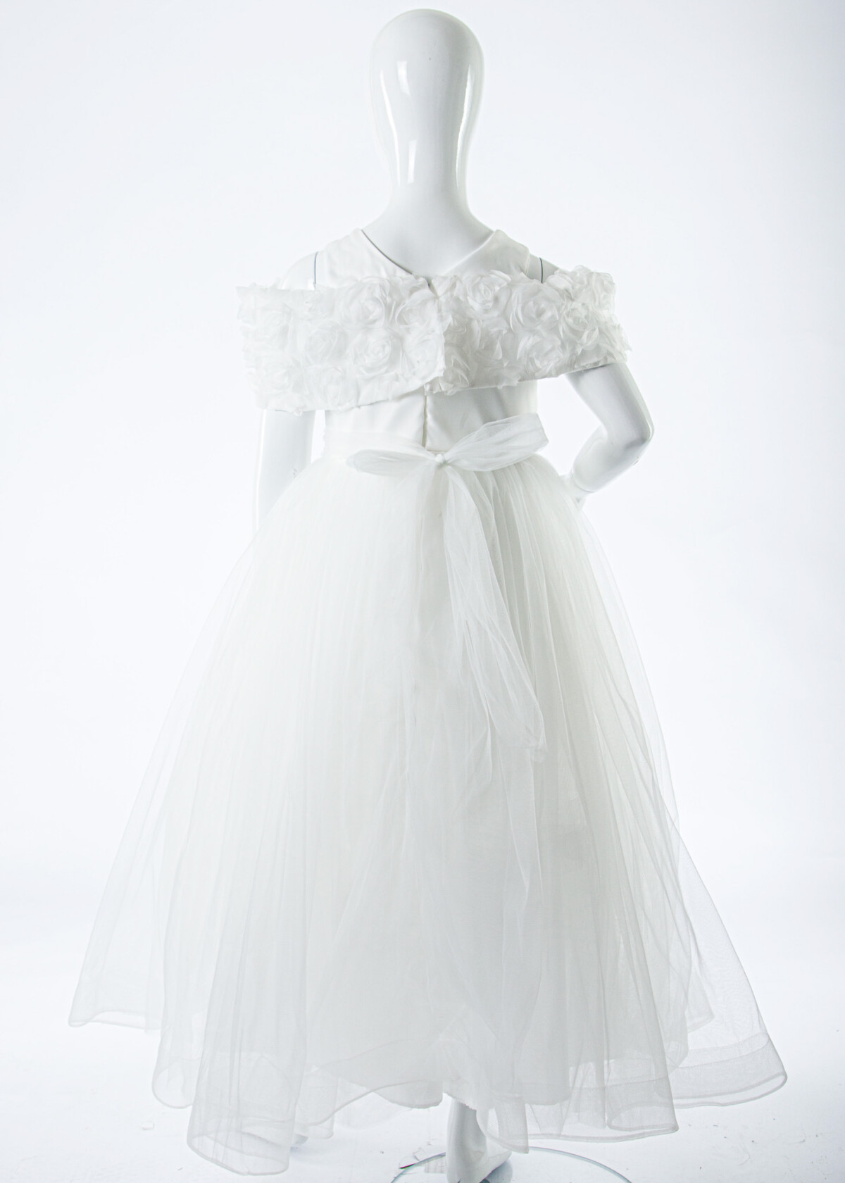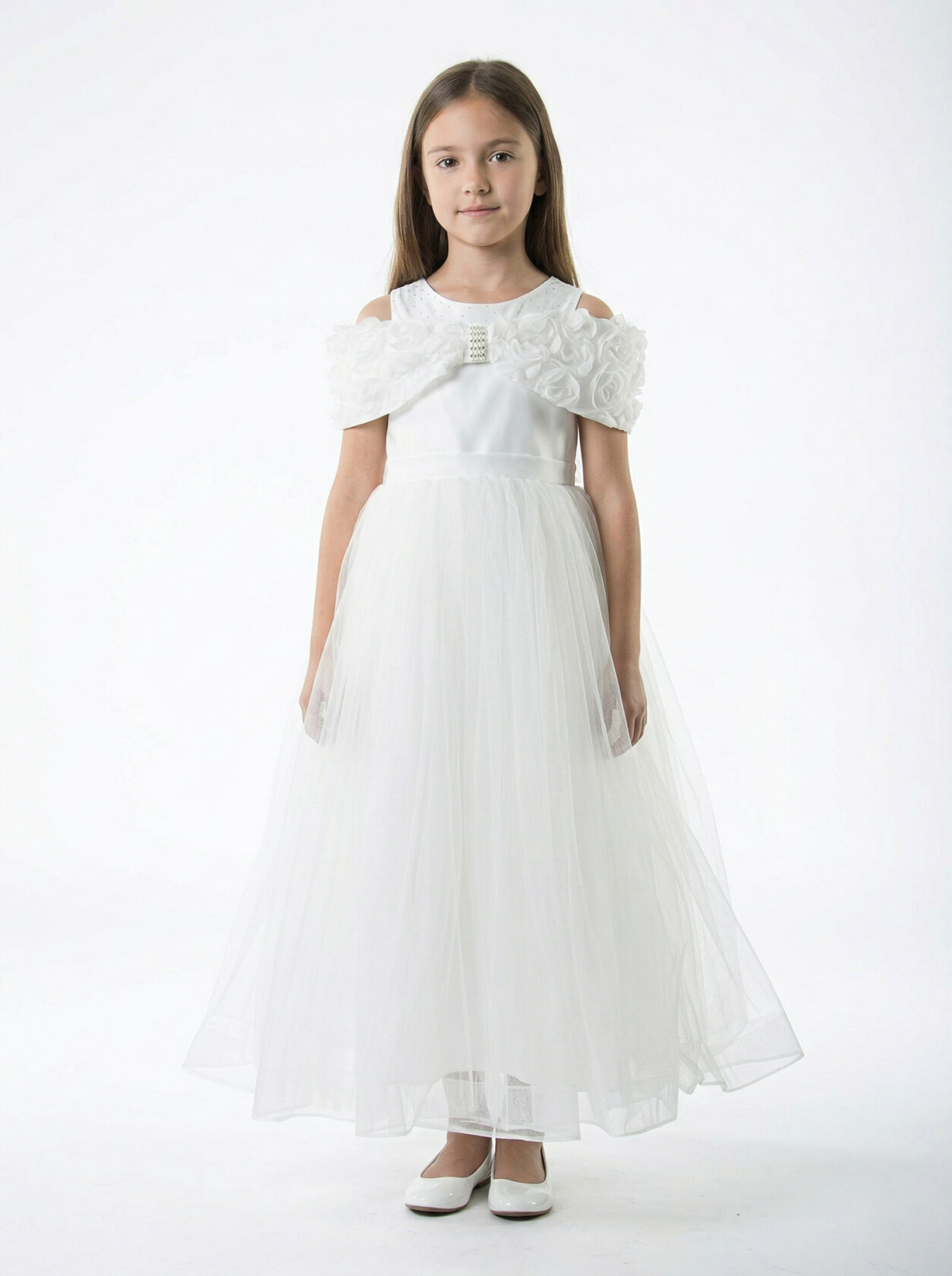 - Omuzları açık, çiçek detaylı kabarık tül süslemeli üst kısım