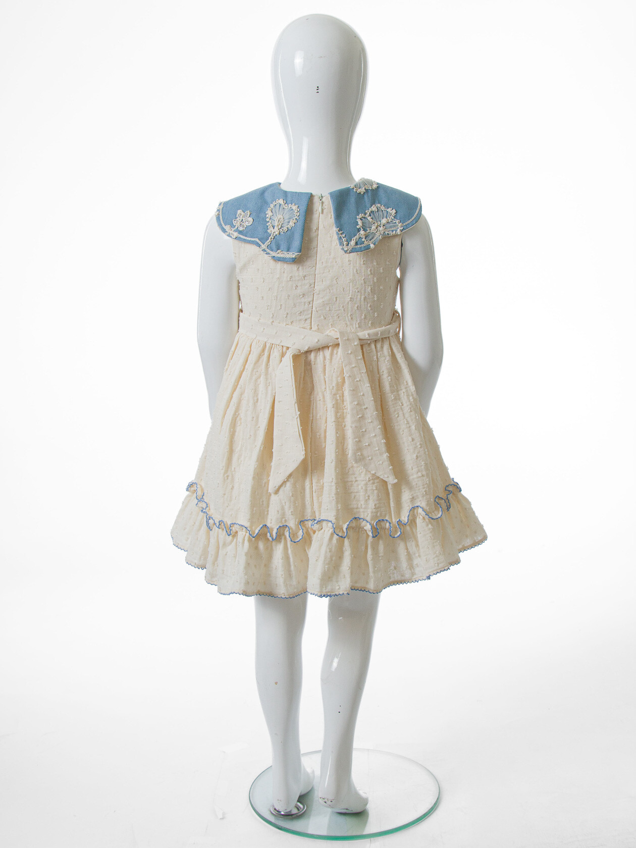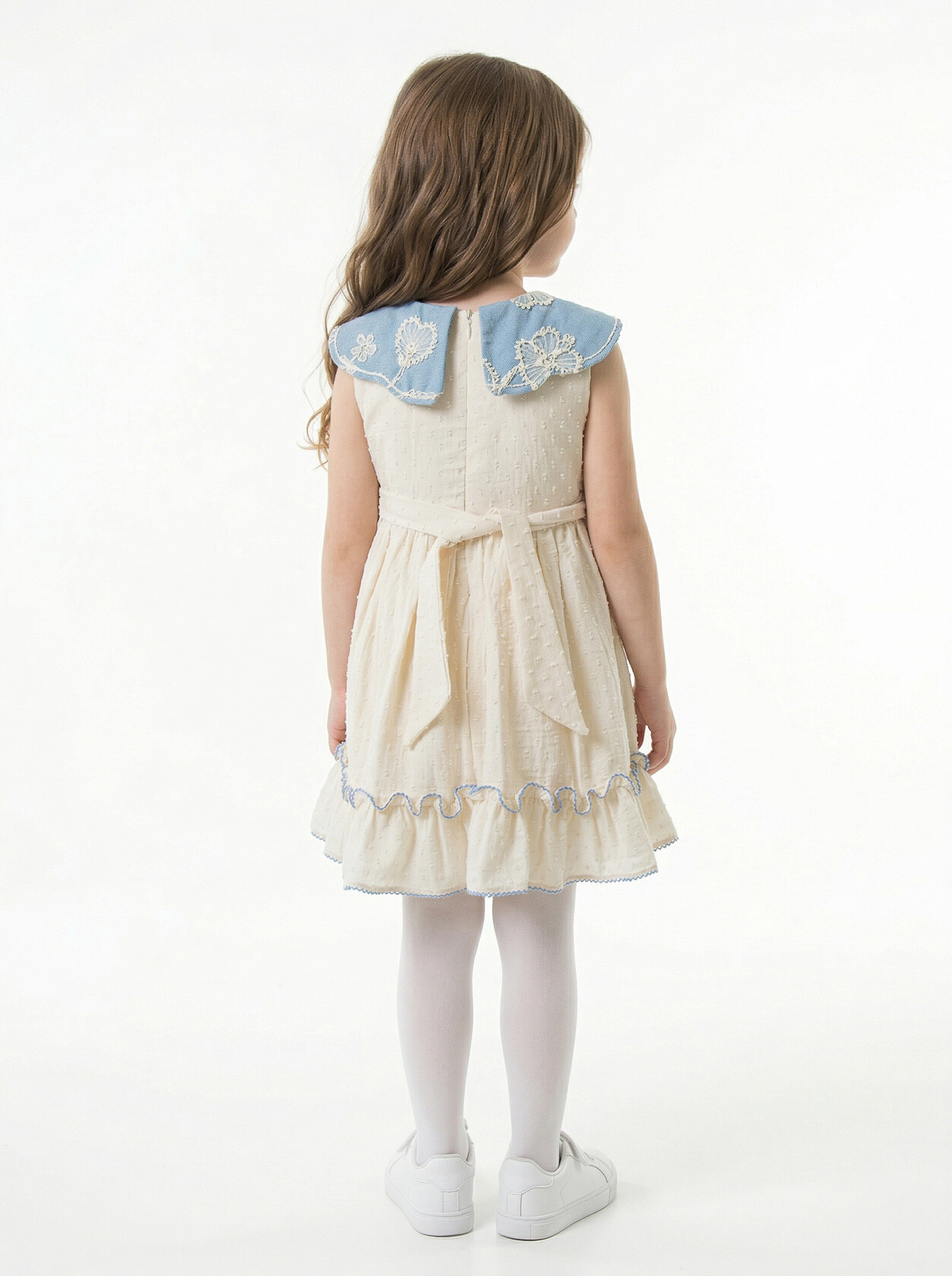 - Yuvarlak yaka ve büyük, dantel detaylı yaka