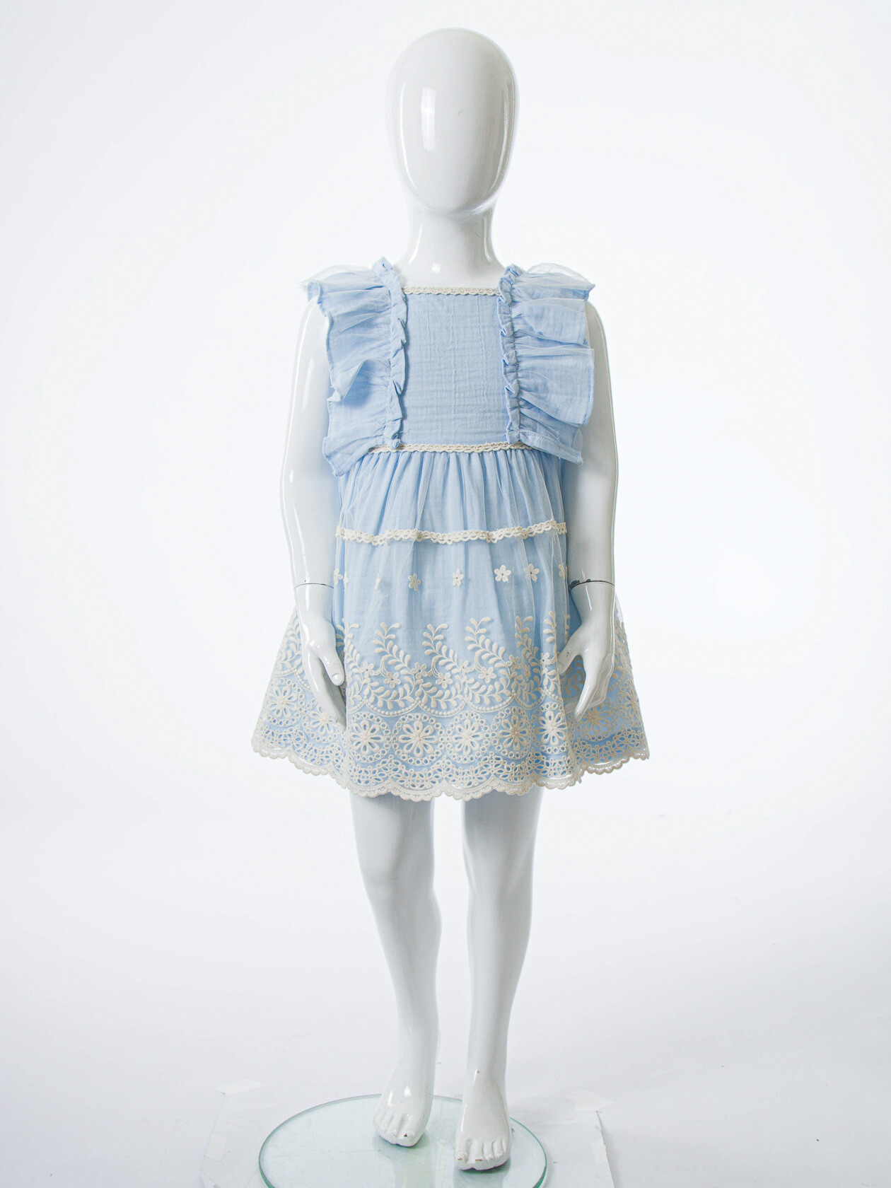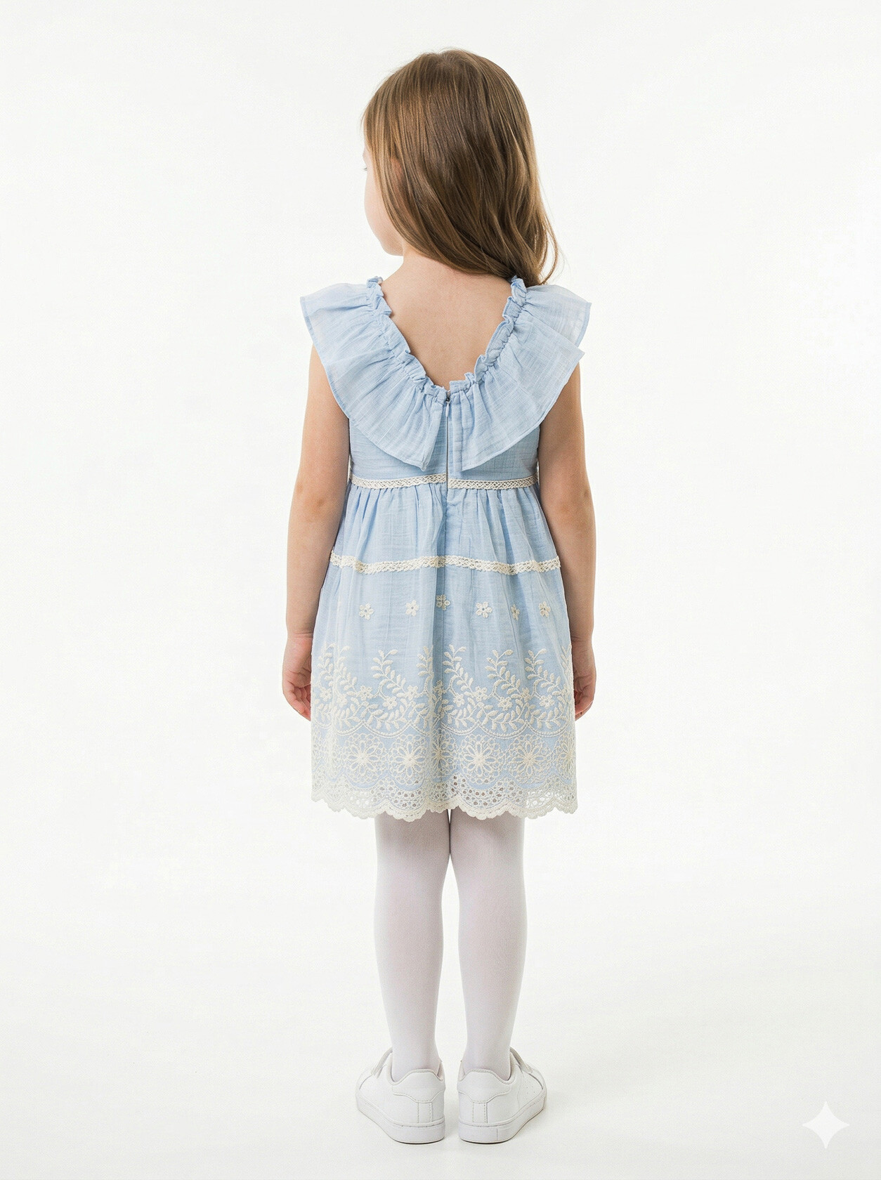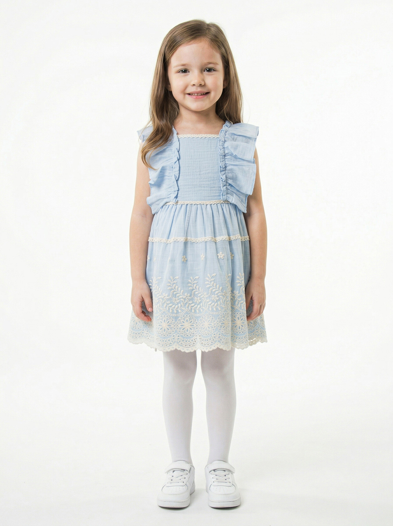 Bu güzel elbise, küçük kızların yaz günlerinde rahat ve şık görünmelerini sağlamak için tasarlanmıştır. Yumuşak kumaşı ve hafif yapısıyla, hareket özgürlüğü sunar ve gün boyu konforlu bir deneyim sağlar.