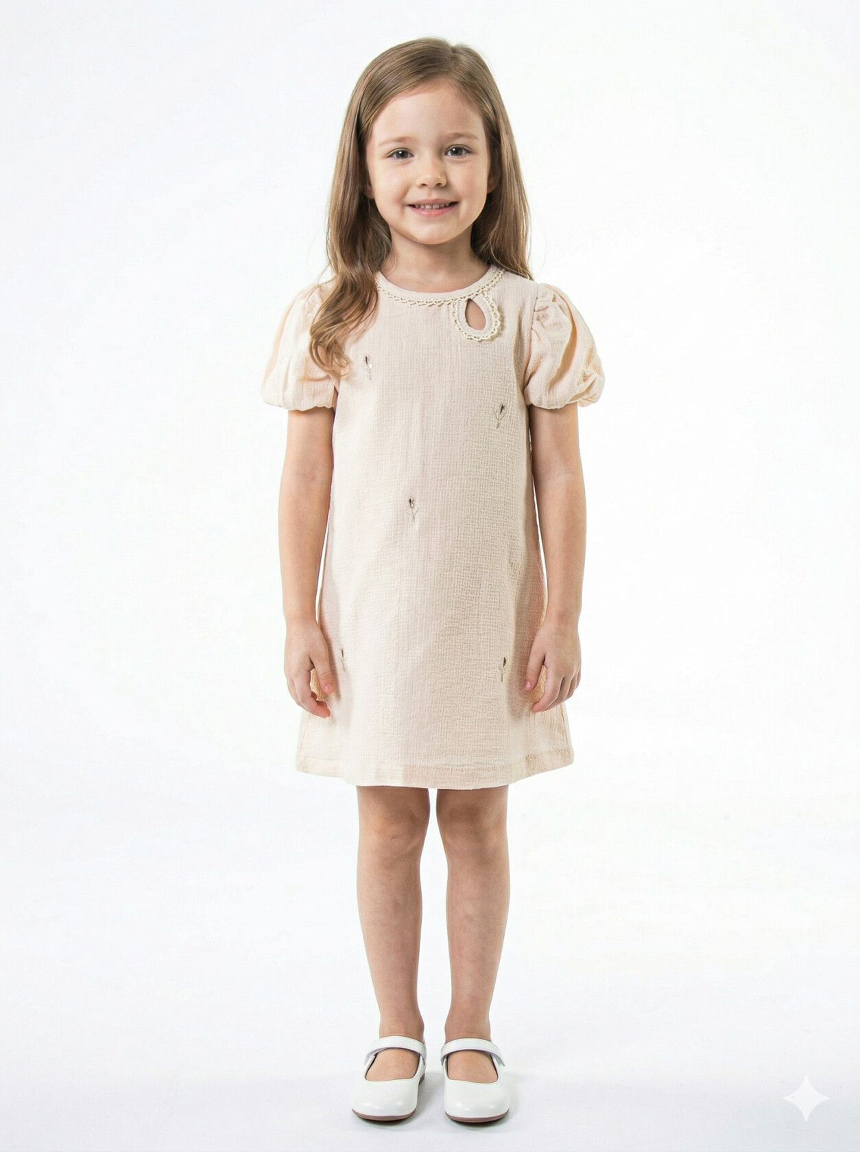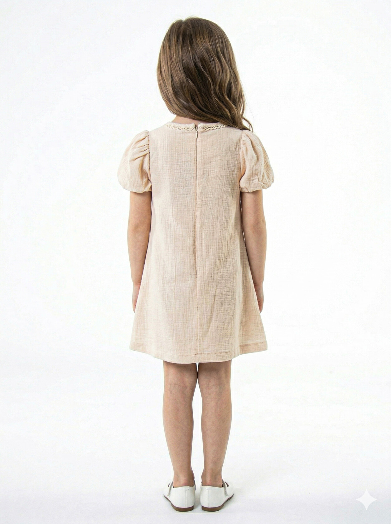Bu sevimli elbise, yaz günlerinde kız çocuklarınızın rahat ve şık görünmesini sağlamak için tasarlanmıştır. Yumuşak kumaşı ve hafif yapısıyla, hareket özgürlüğü sunarak çocukların oyun oynarken rahat hissetmelerine yardımcı olur.