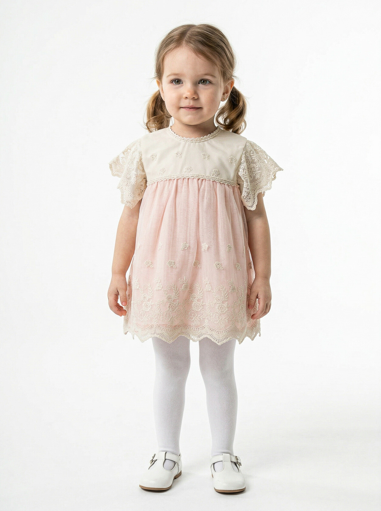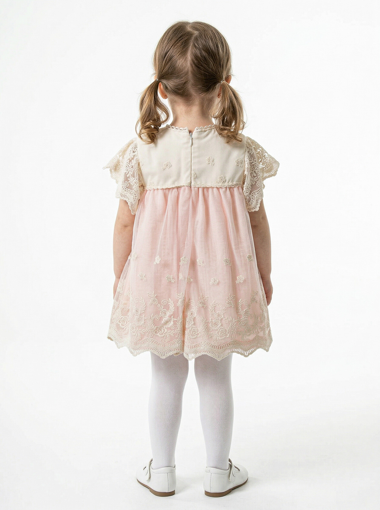 Kız Çocuk Elbise 3-7 Yaş 35421 Pudra