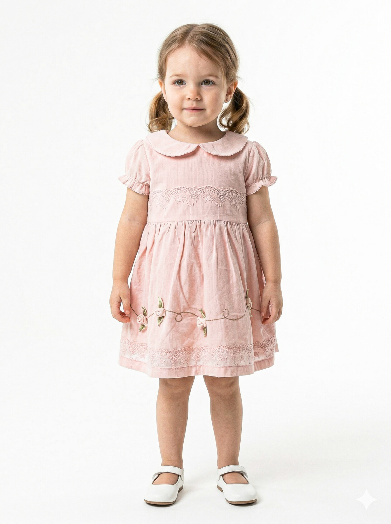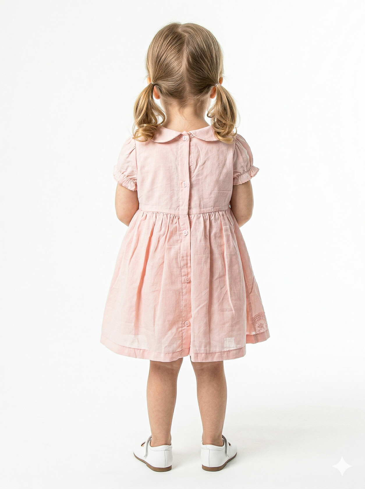 Bu şık elbise, küçük kızınızın rahat hareket etmesini sağlayan yumuşak ve nefes alabilen kumaşıyla yaz aylarının favorisi olacak. Zarif detayları ve klasik kesimiyle hem günlük kullanıma hem de özel günlere uygundur.