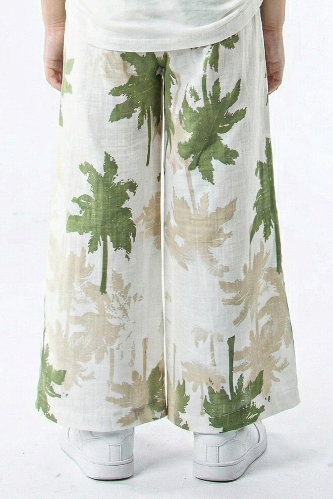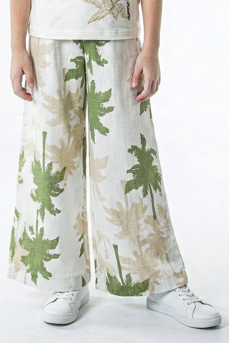 Kız Çocuk Yazlık Pantolon 8-14 Yaş 51366 Ekru - Yeşil