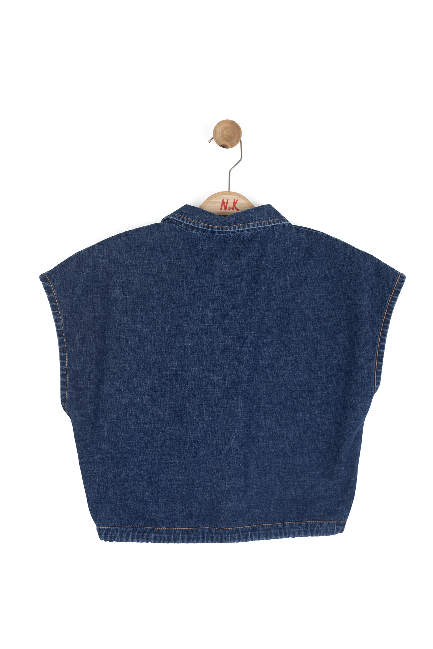 - Kısa kollu, kapüşonsuz denim yelek