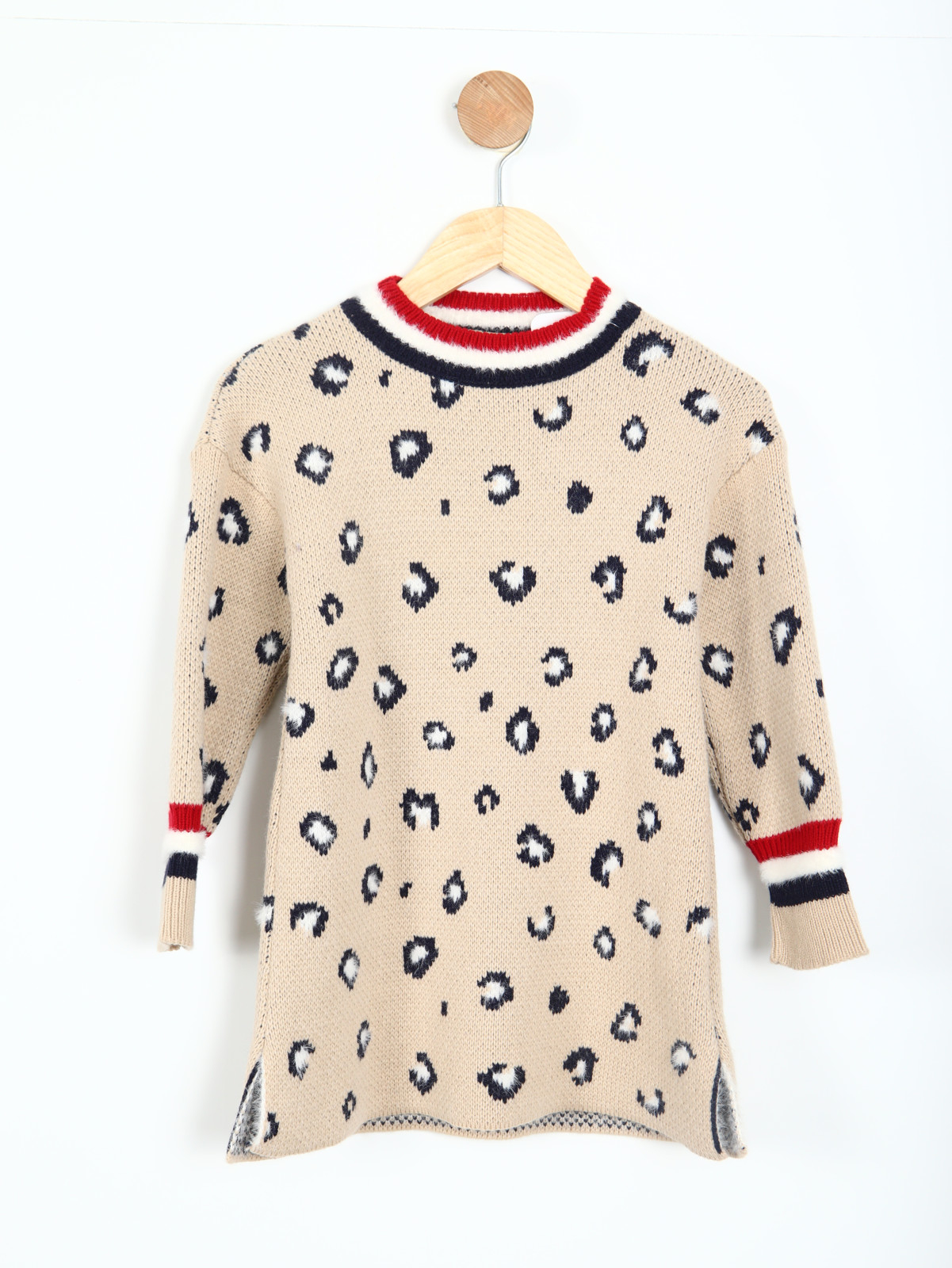 Kız Çocuk Yuvarlak Yakalı Yan Yırtmaçlı Elbise + Hediye 3-7 Yaş 2228 Bej - 4