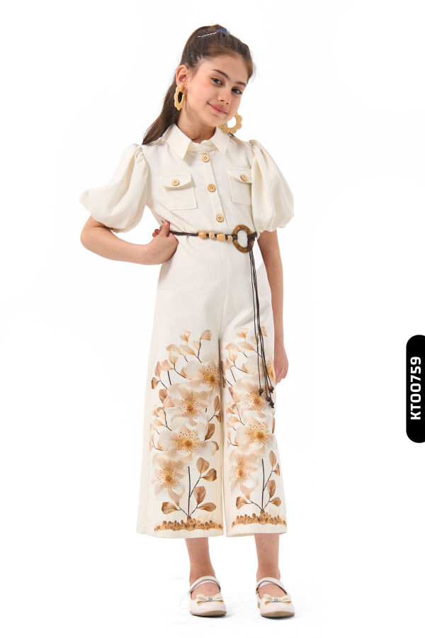يتميز هذا الجمبسوت الفاتح بلون الكريم والمصمم خصيصًا لفصل الصيف بأنه يجمع بين الأناقة والراحة بسلاسة. يحتوي على أكمام قصيرة ومنفوخة، وياقة قميص، وإغلاق بأزرار من الأمام ليمنح مظهرًا كلاسيكيًا. الحزام المزخرف بالحبل مع إبزيم خشبي عند الخصر يضيف لمسة ساحرة. الطباعة الكبيرة للزهور في الأسفل تعطي الجمبسوت إحساسًا أنيقًا وطبيعيًا. طوله متوسط (ميدي) مما يضمن الراحة والعملية.
