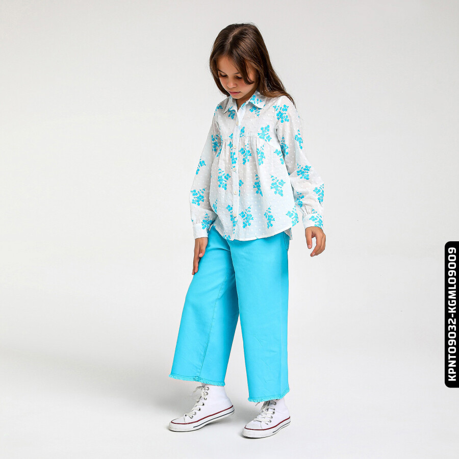 Yaz mevsimi için ideal, kız çocuklarına özel tasarlanmış bu gömlek, şıklığı ve rahatlığı bir arada sunuyor. Uzun kollu ve düğmeli tasarımı sayesinde kolay giyilip çıkarılabilir. Hafif ve ince kumaşı, sıcak günlerde ferah bir kullanım sağlar. Beyaz zemin üzerine yeşil çiçek desenleriyle süslenmiş olan gömlek, ince puantiye dokusuyla dikkat çeker. Bisiklet yakaya yakın, klasik gömlek yakası ile zarif bir görünüm sunar. Günlük kullanımda veya özel davetlerde rahatlıkla tercih edilebilir.