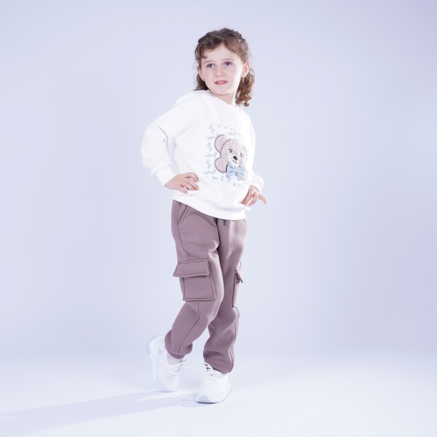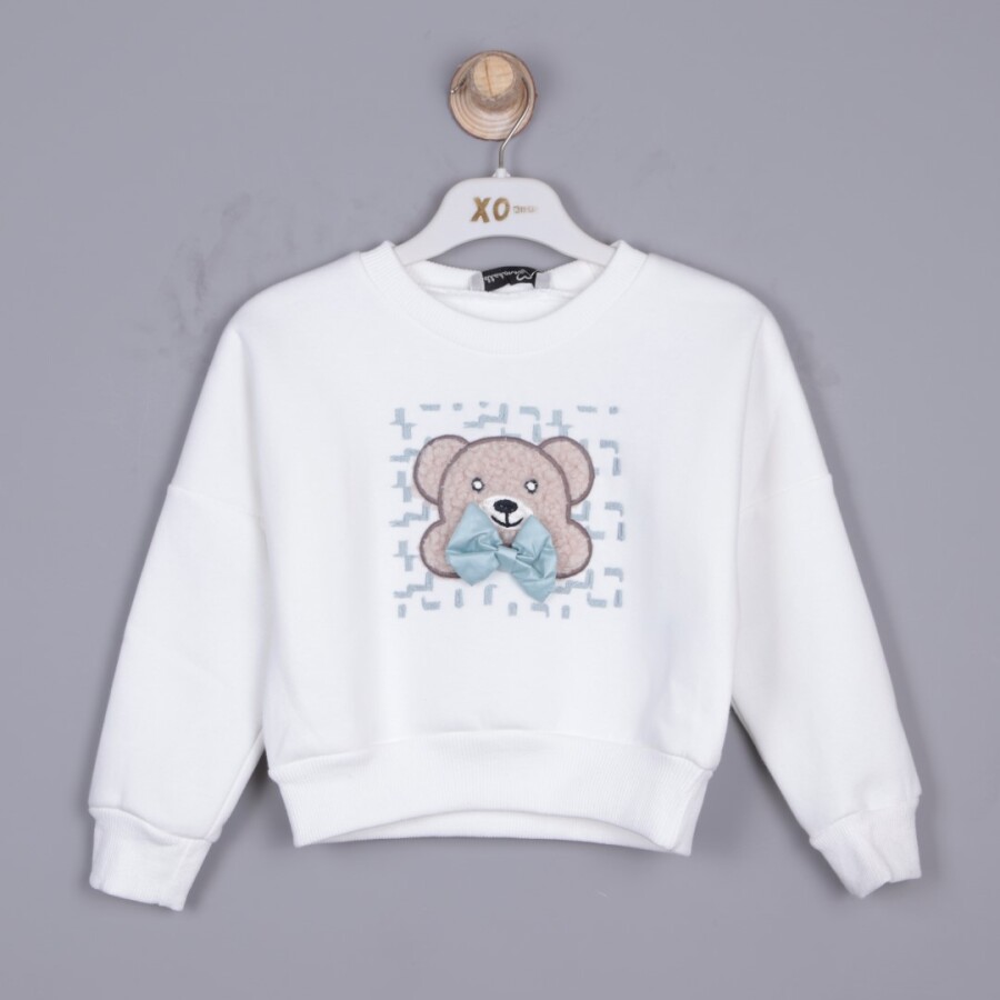 Bu kız çocuk kazağı, rahat ve şık bir kışlık üst arayanlar için ideal bir seçim. Ekru renginde, kapüşonsuz, sıfır yakalı tasarımı ile sade ve kullanışlıdır. Önünde sevimli bir ayıcık baskısı bulunur ve uzun kolludur. Bel ve kol manşetleri lastiklidir, böylece sıcak tutar. Spor ve günlük kullanıma uygun, konforlu bir kışlık kazaktır.