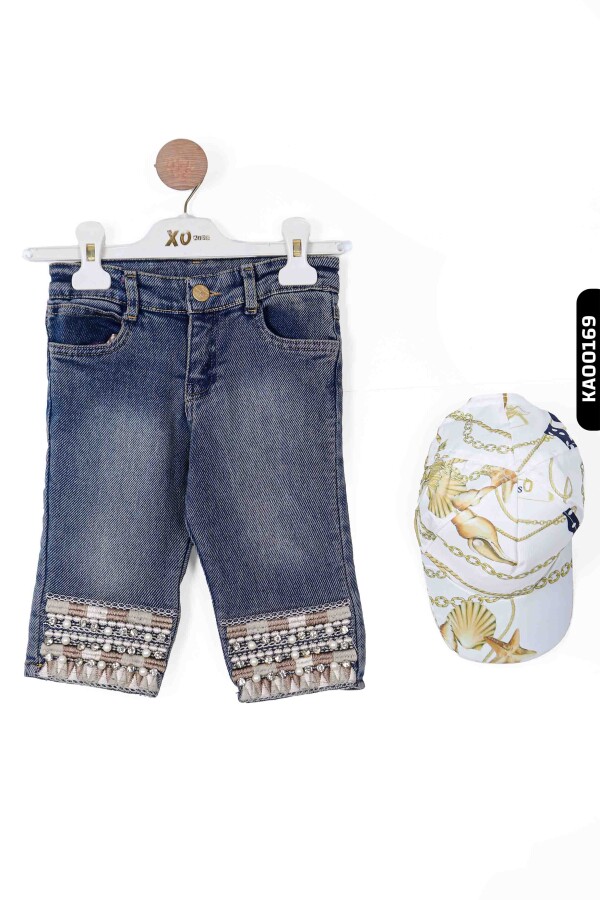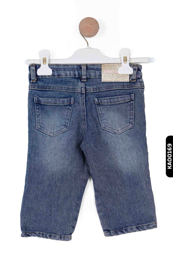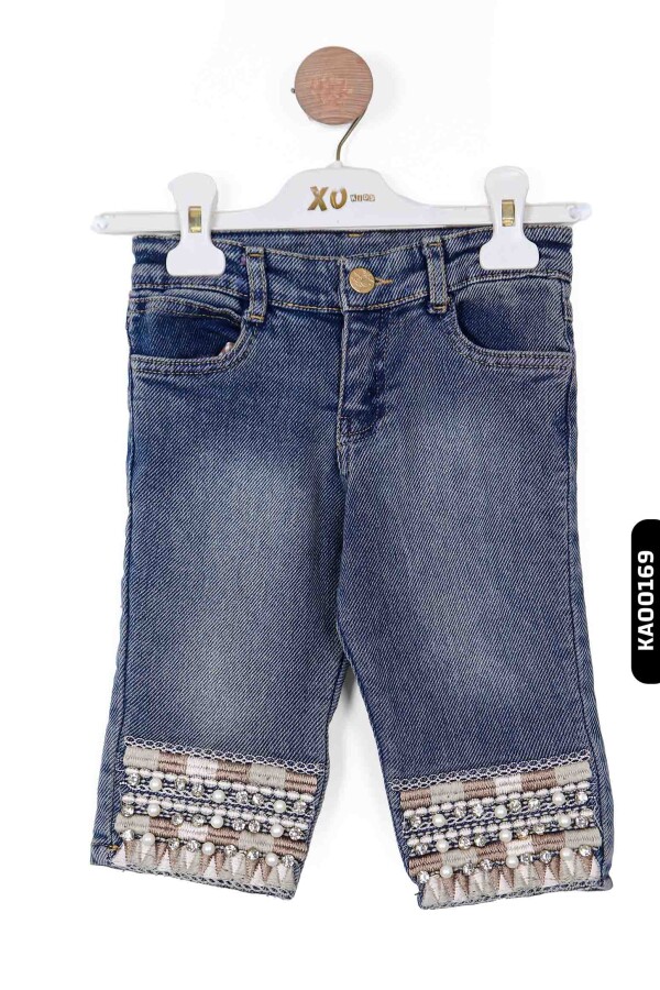 Bu şık kız çocuk pantolonu, hem konforlu hem de trendy bir görünüm sunuyor. Mavi tonlarında denim kumaşından üretilmiştir ve alt kısmında dikkat çekici bir dantel detayı bulunmaktadır. Günlük kullanım için idealdir.