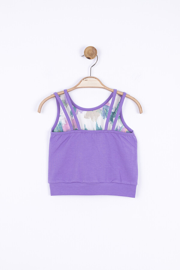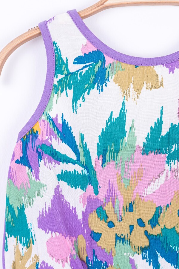 Yaz ayları için ideal olan bu kız çocuk askılı bluz, nefes alabilen hafif kumaşı ve canlı renkleriyle dikkat çekiyor. Kolsuz ve bisiklet yaka tasarımı sayesinde hareket özgürlüğü sağlarken, kısa boy kesimi ile modern ve şık bir görünüm sunuyor. Üzerindeki renkli, soyut desenler çocuğunuzun enerjisini yansıtıyor. Bluz rahat kombinlenebilen krem rengi pantolonlarla ve canlı pembe denim ceketle tamamlanabilir.