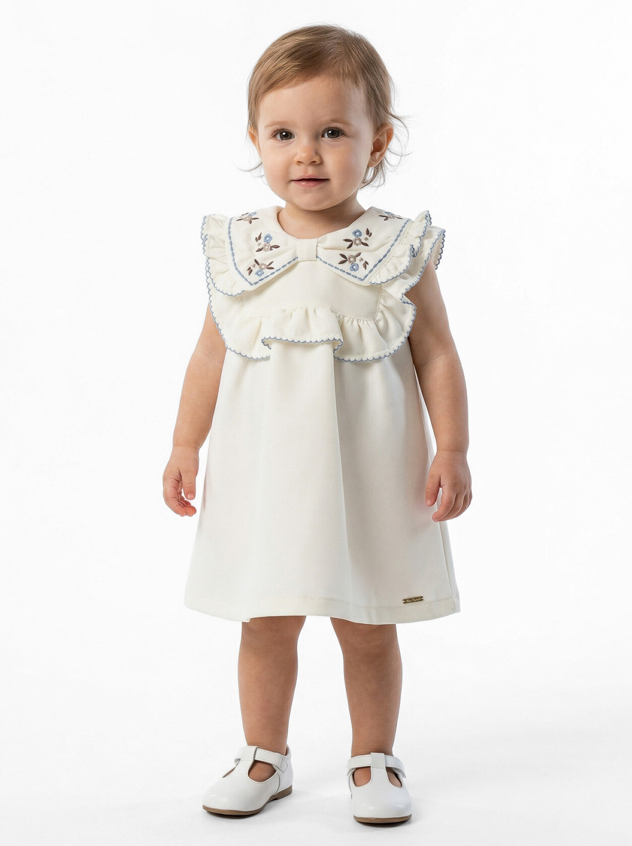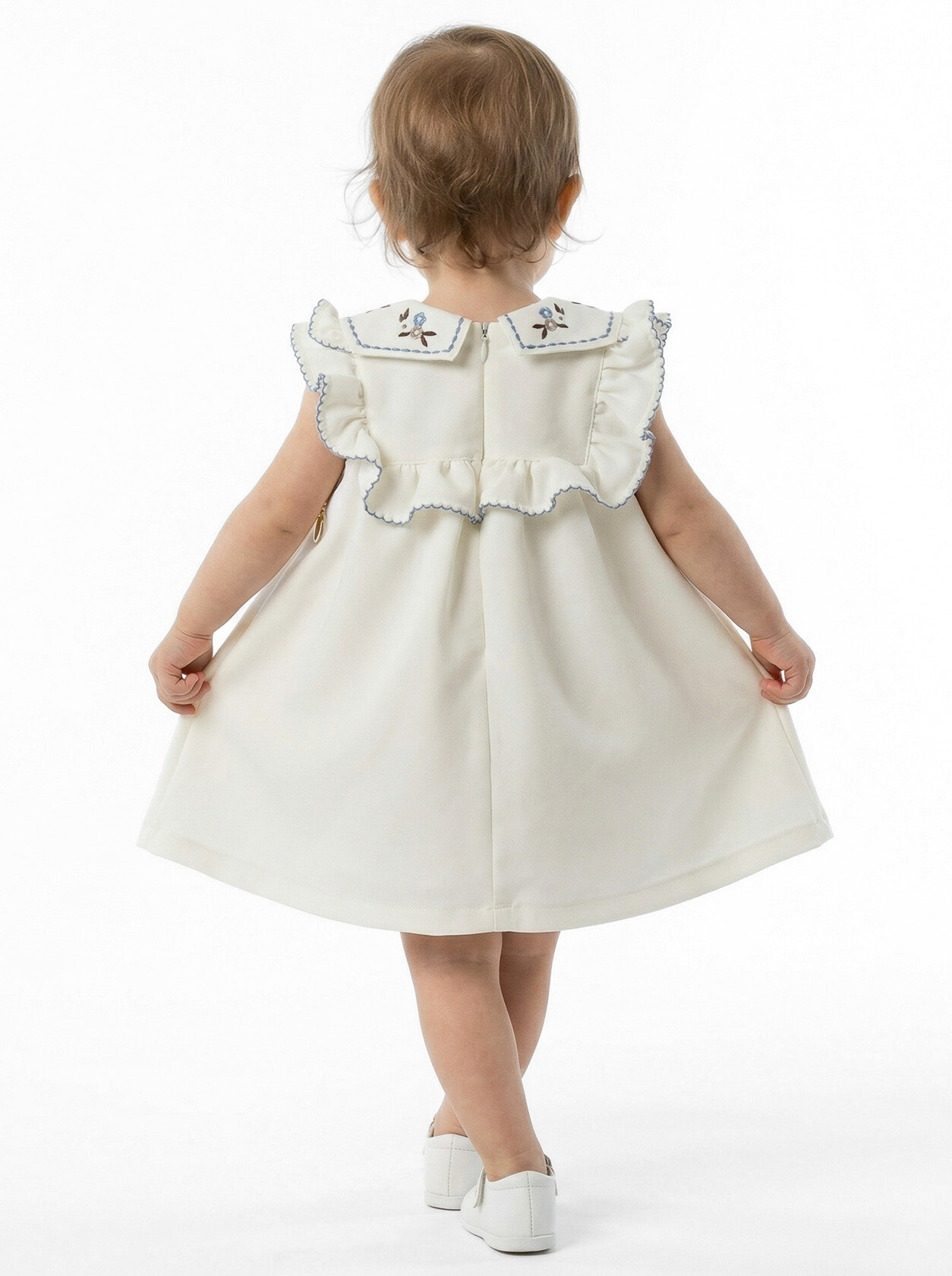 Külotlu Kız Çocuk Elbise 3-12 Ay 5106 Ekru