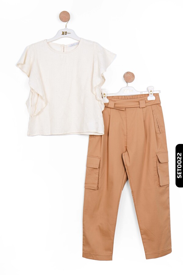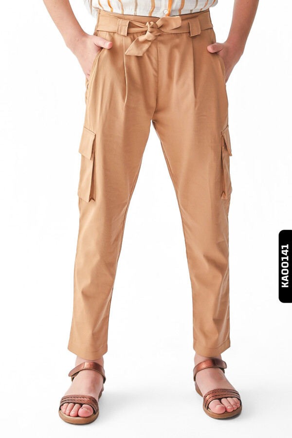 Lastikl Kuşaklı Belli Kargo Cepli Geniş Paçalı Kız Çocuk Pantolon 8-14 Yaş 56329 Camel - 7
