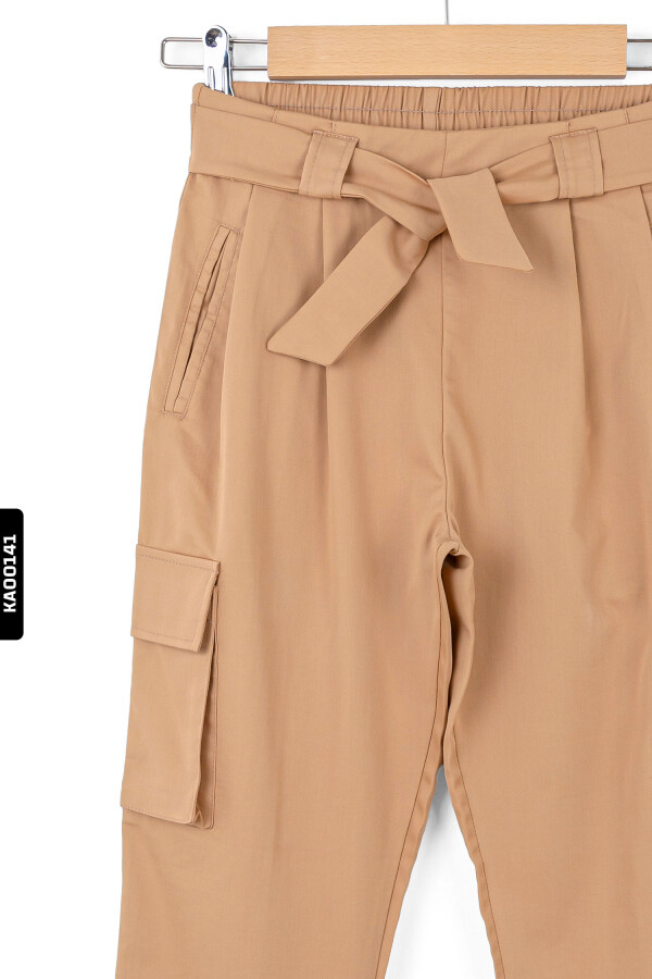 Lastikl Kuşaklı Belli Kargo Cepli Geniş Paçalı Kız Çocuk Pantolon 8-14 Yaş 56329 Camel - 4