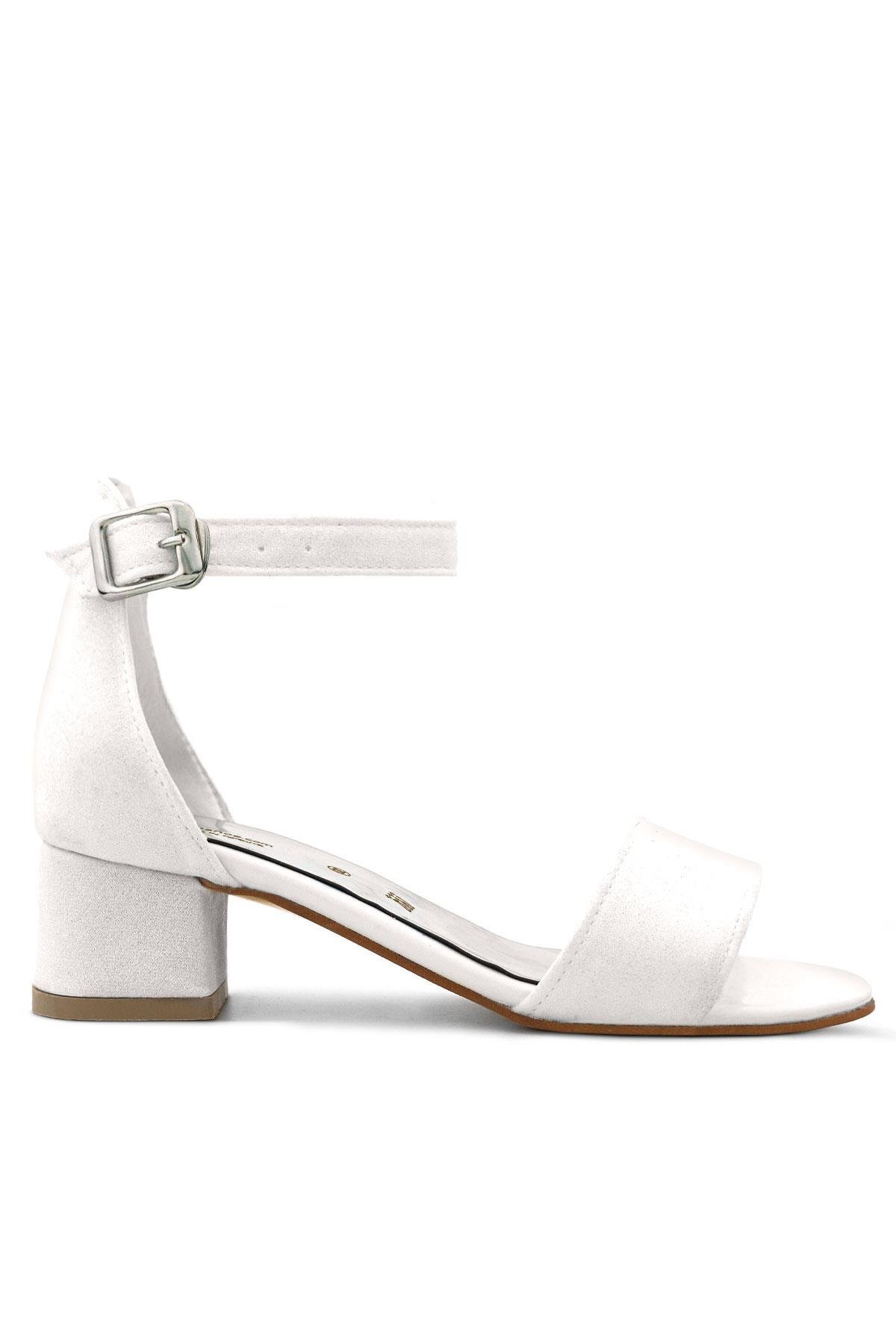 Lilo Simli Beyaz Tek Bantlı Kız Çocuk Topuklu Abiye Ayakkabı