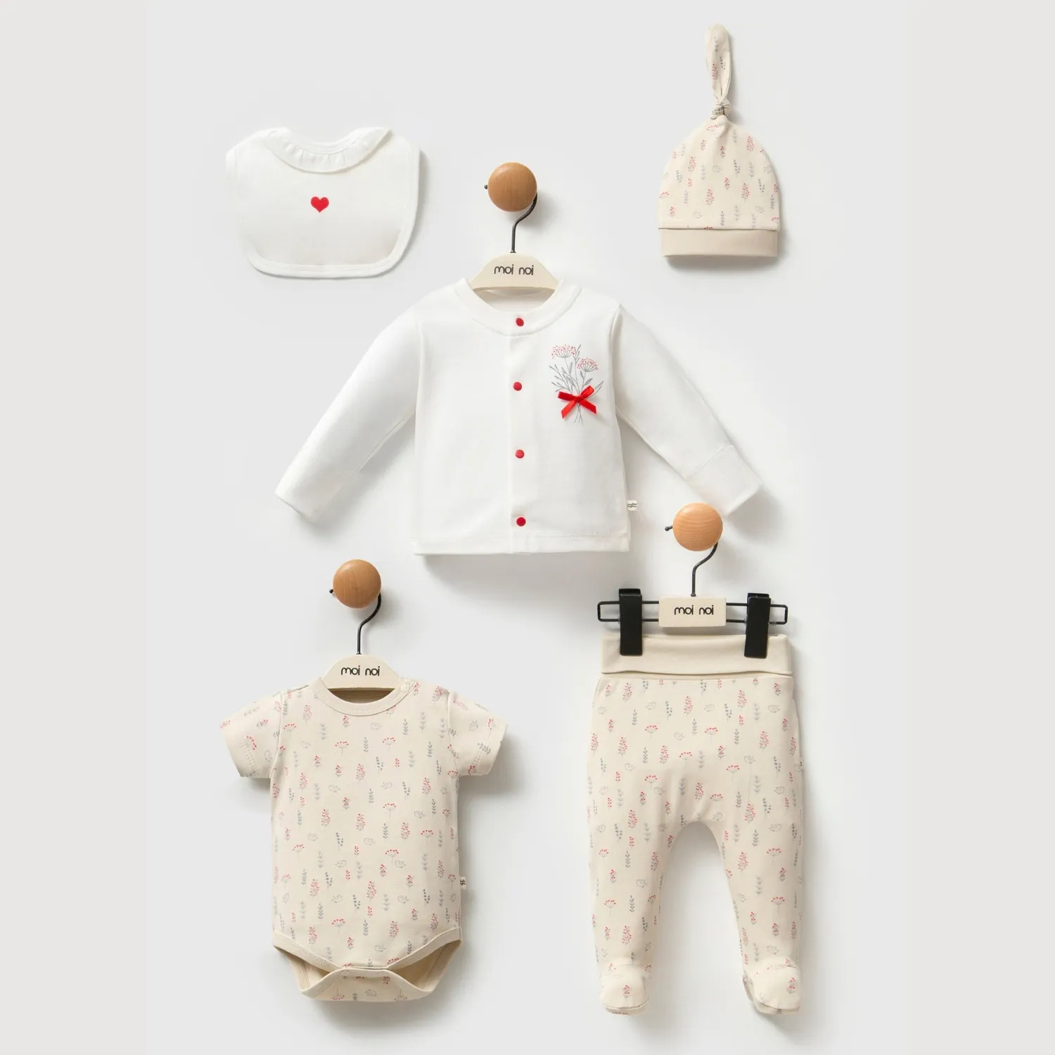 Moi Noi 5li Bebek Hastane Çıkışı pamuklu kumaştan üretildiği için sık yıkamaya uygundur. Ergonomik yapısıyla bebeğinizi sarar, estetik tasarımıyla şıklığını tamamlar. Bebeğinizin sağlığına uygun kumaş ve malzemelerden üretilmektedir. Ürünlerimizi uzun süre kullanabilmek için yıkama talimatlarına uyunuz.