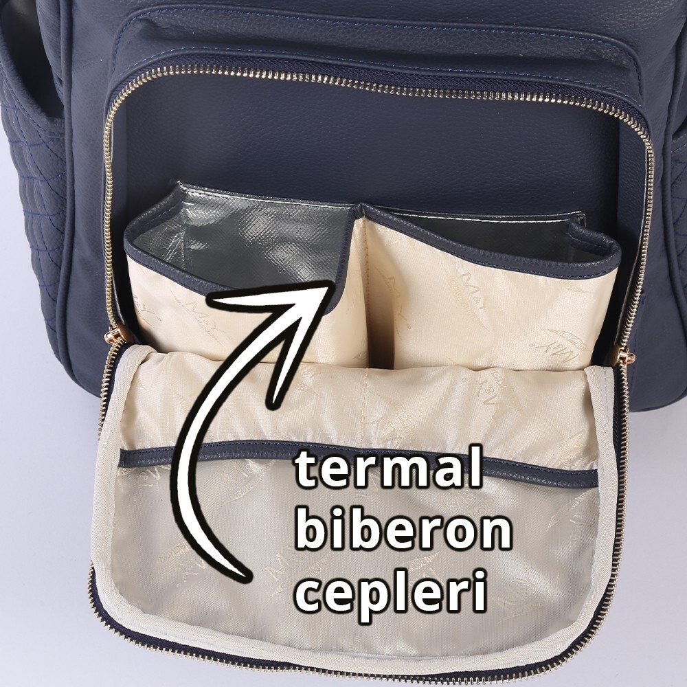 Ön fermuarlı kısımda termal biberon bölmesi bulunmaktadır.