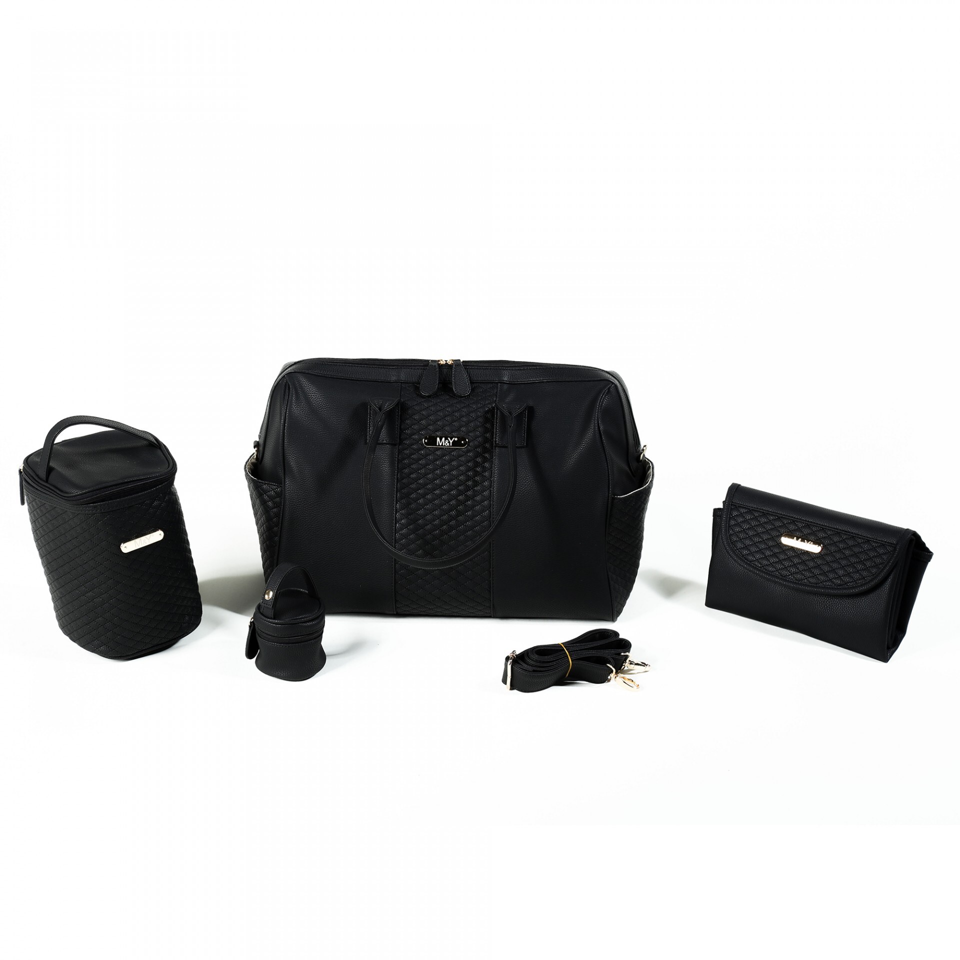 طقم حقائب العناية بالأم والطفل من الجلد من إم آند واي جايا، رقم 7240، أسود