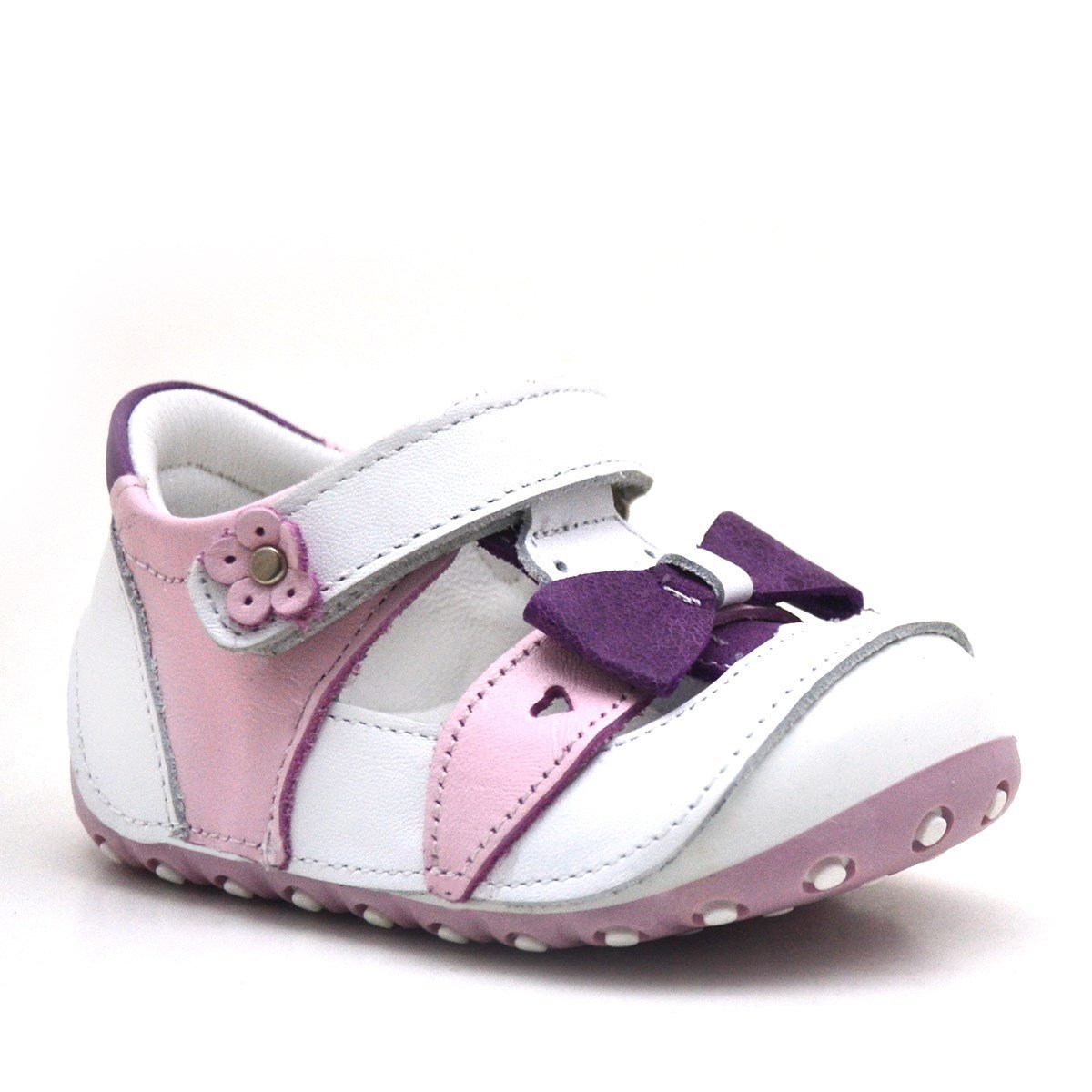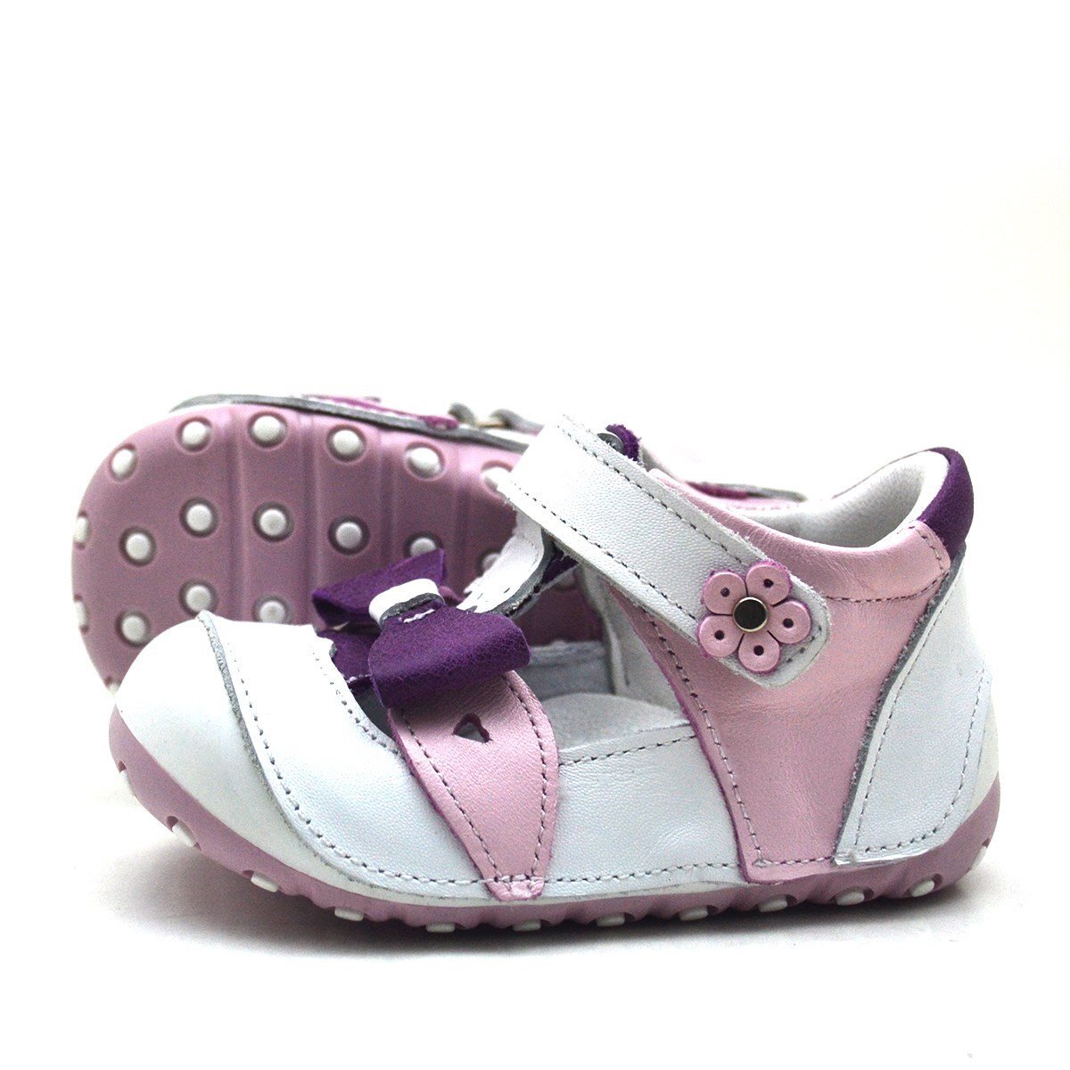 حذاء نينو الصيفي الوردي المصنوع من الجلد الطبيعي بشريط فيلكرو للخطوة الأولى