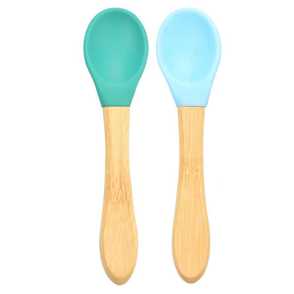 OiOi Bambu Saplı Silikon Mama Kaşığı 2li Yeşil Mavi