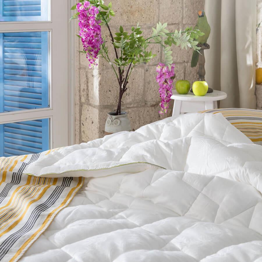 يتميز اللحاف بأناقته وجاذبيته بفضل طبعة الخيزران المطبوعة عليه.