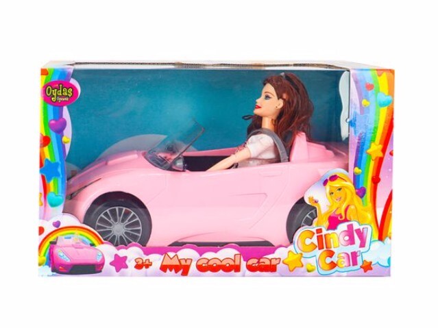 Kutu içerisinde; 1 adet Cindy bebek ve pembe üstü açık spor arabası bulunmaktadır.