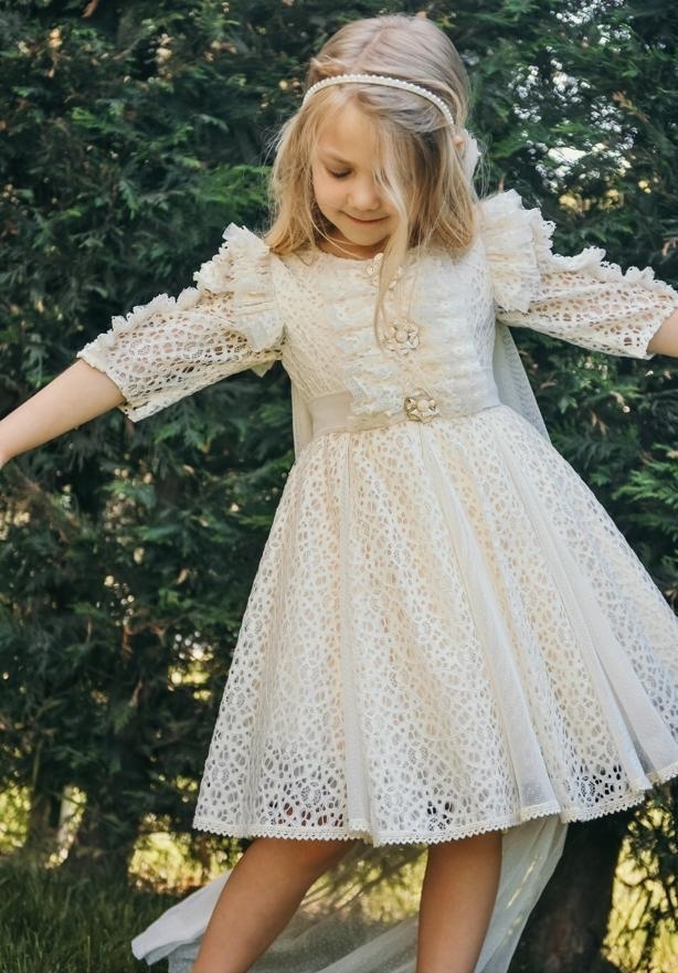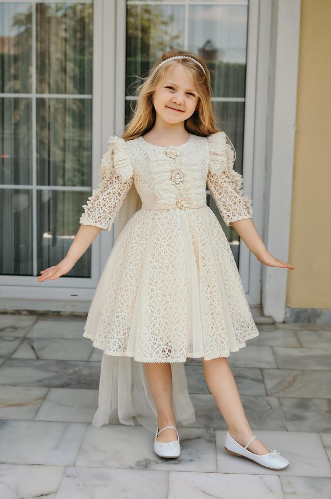 Kız Çocuk Elbise 7-11 Yaş 2711 Ekru