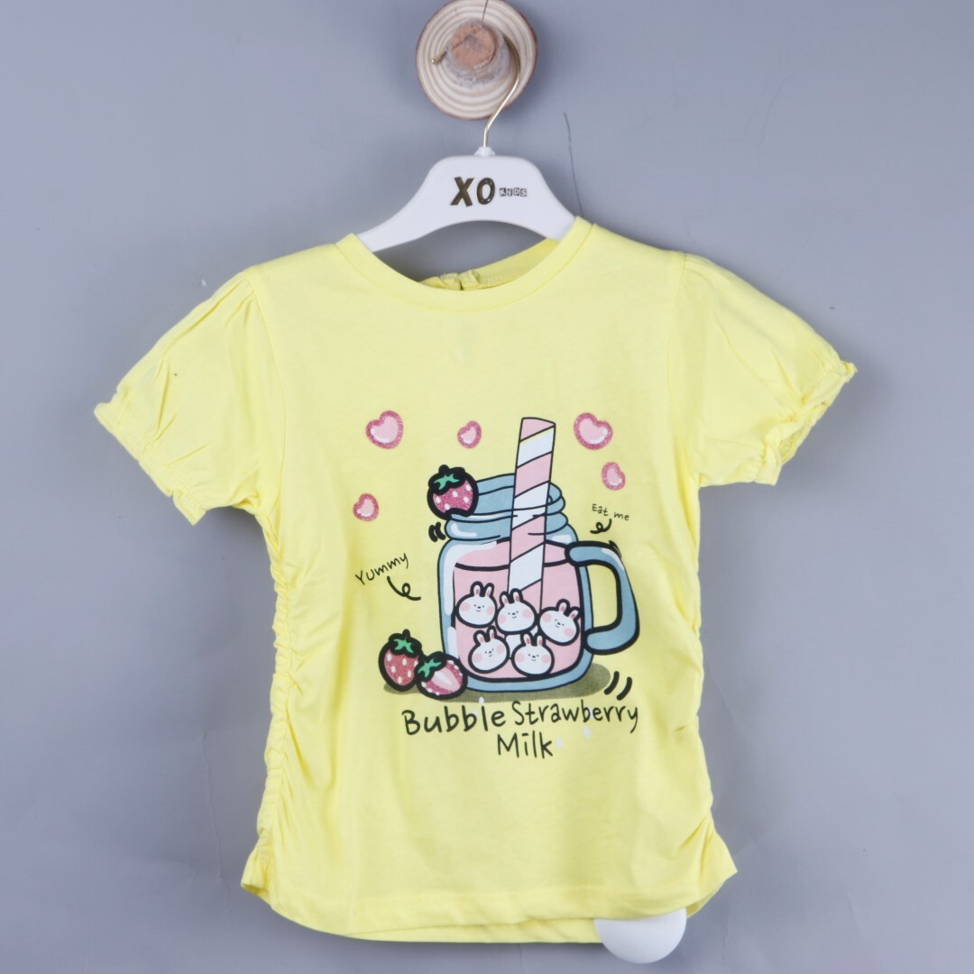 P-004317 (ce 8602) Kız Baskılı Kolları Lastikli T-Shırt 6-36 Ay Sarı