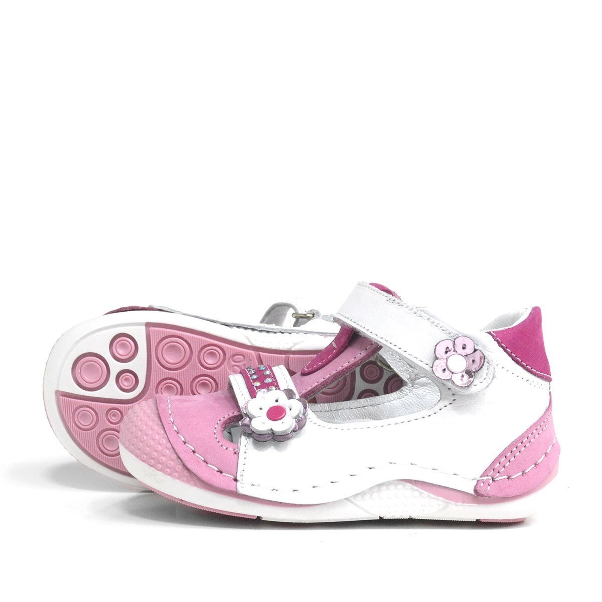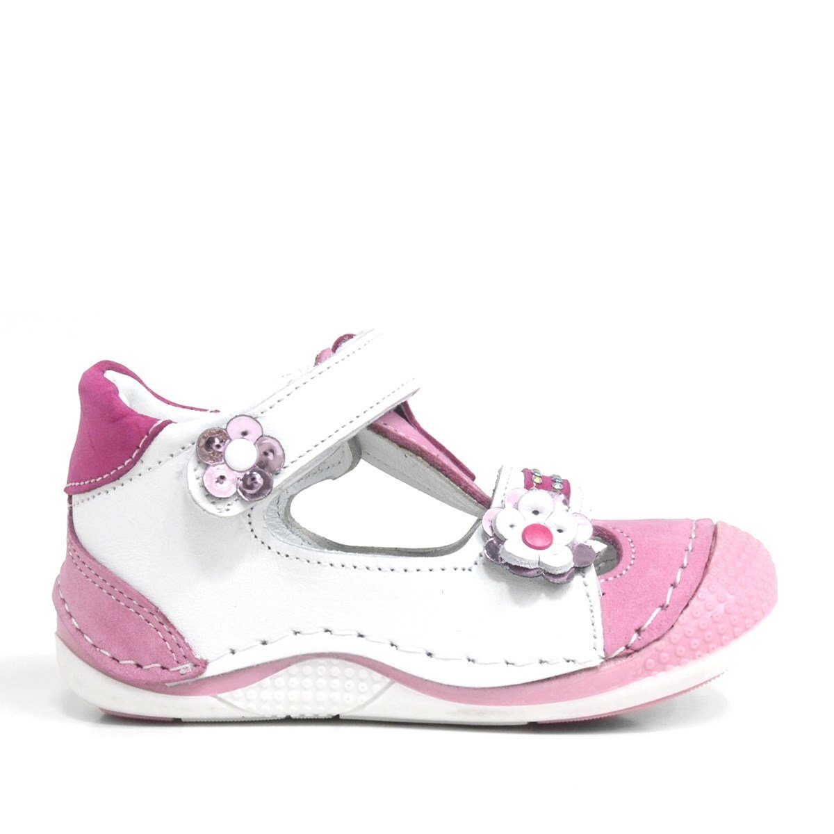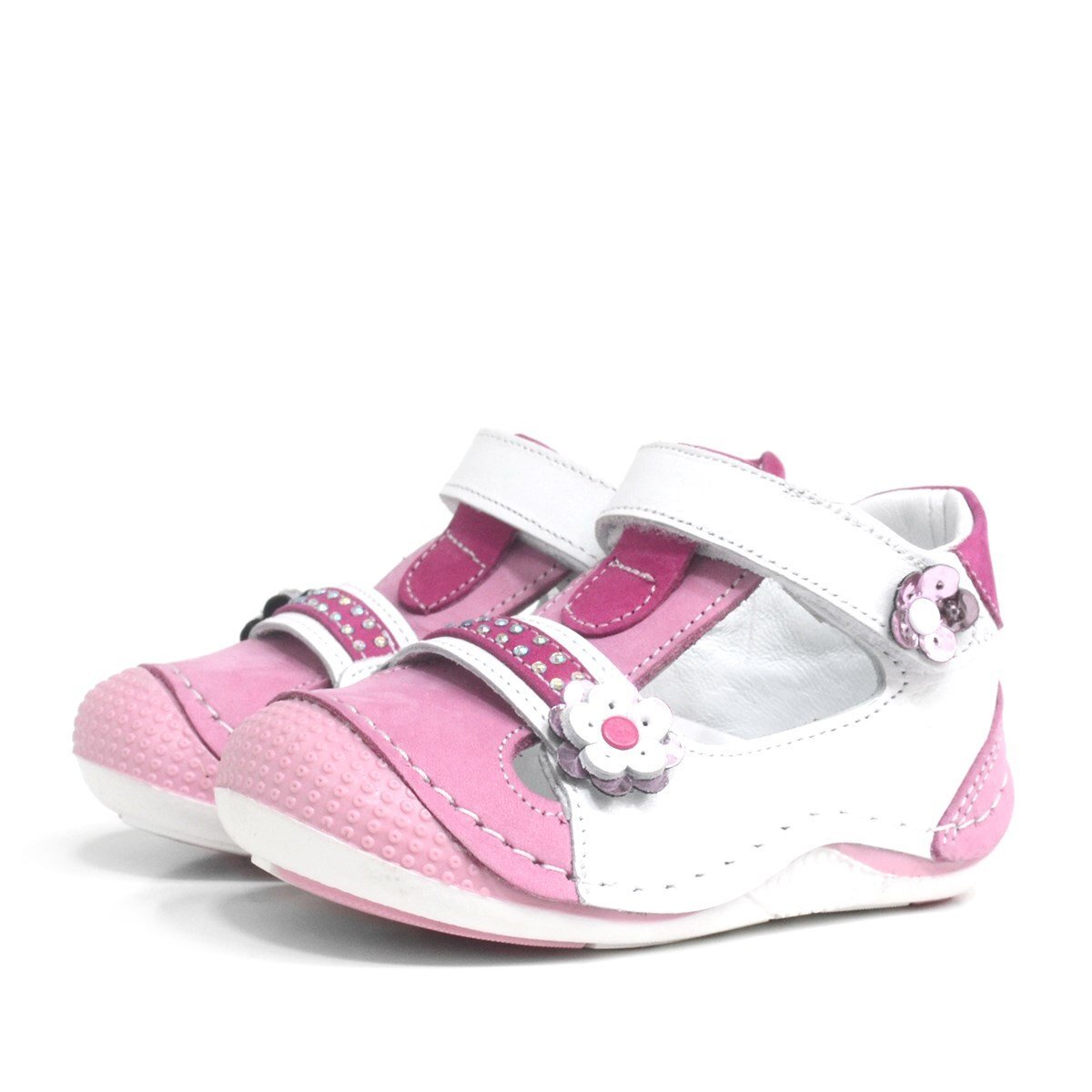 حذاء صيفي وردي اللون من الجلد الطبيعي مع شريط فيلكرو للبنات
