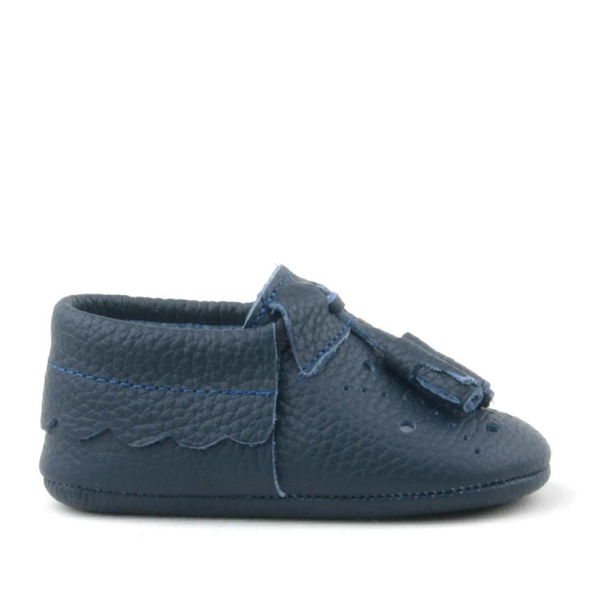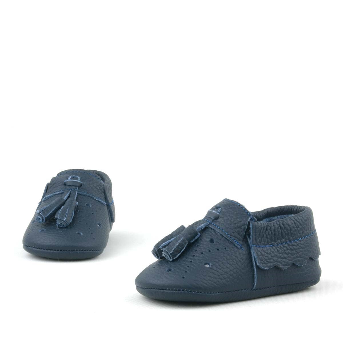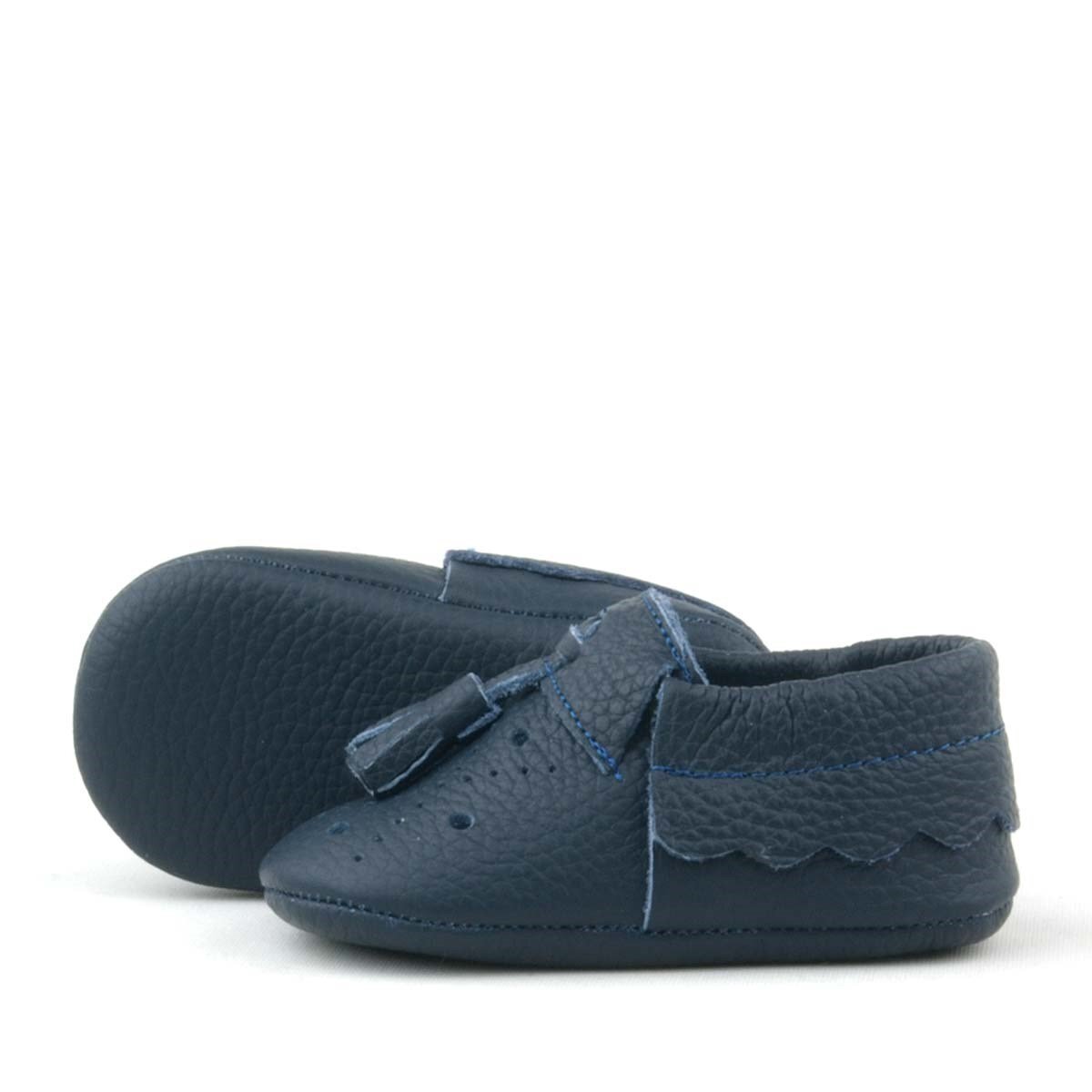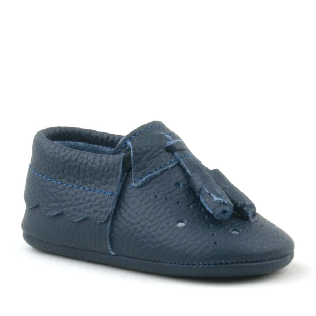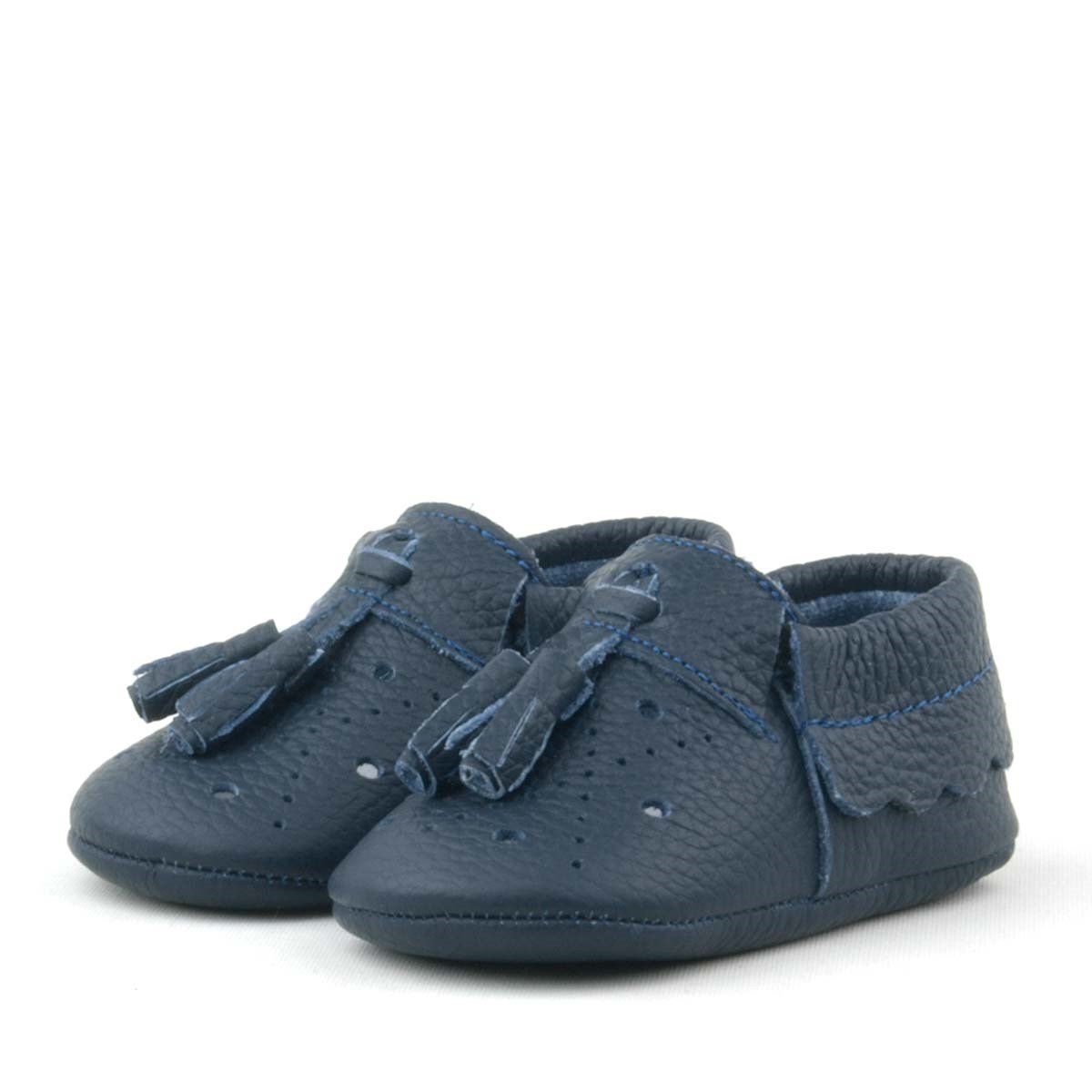 Peppa Hakiki Deri Lacivert Püsküllü Lastikli Bebek Patik