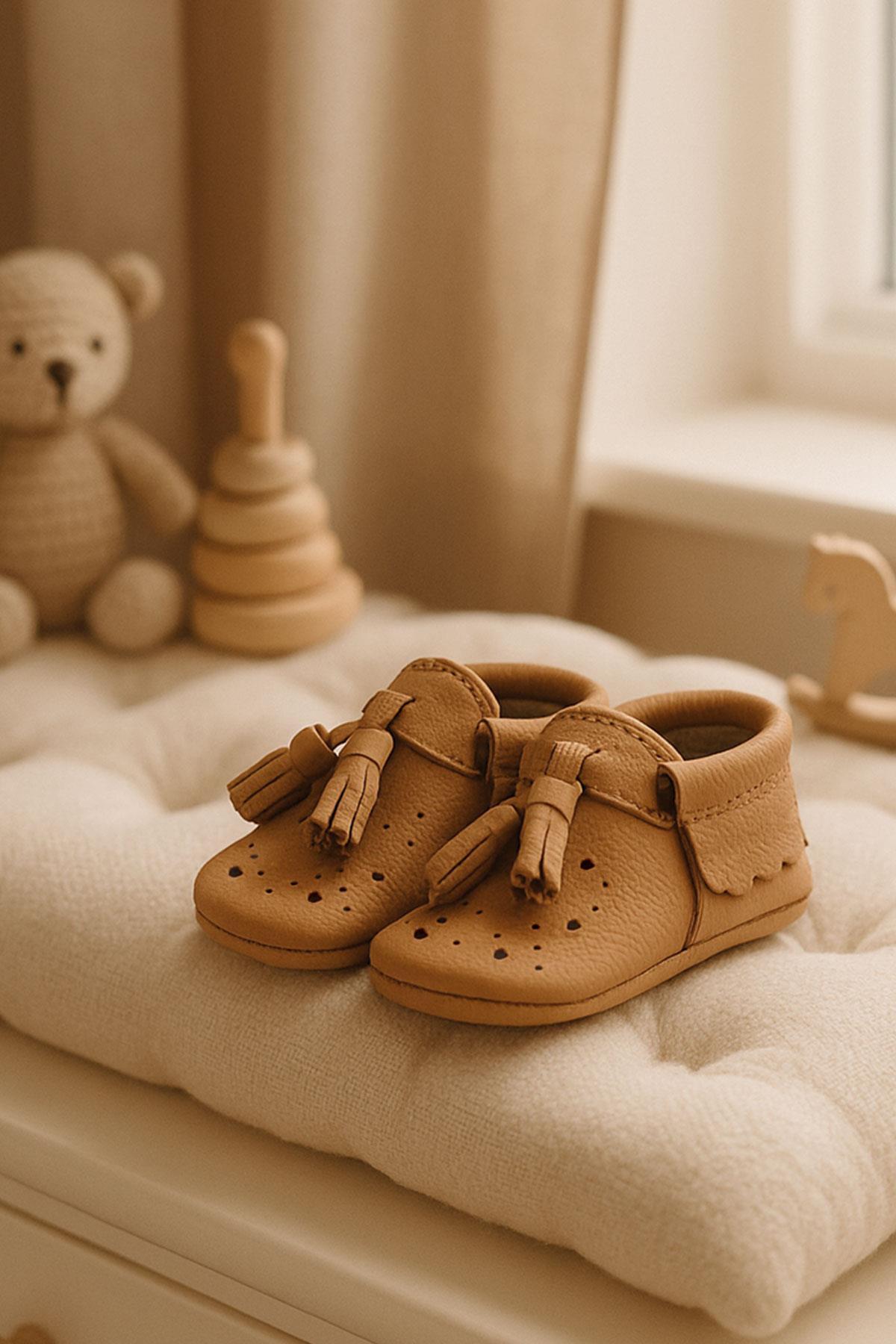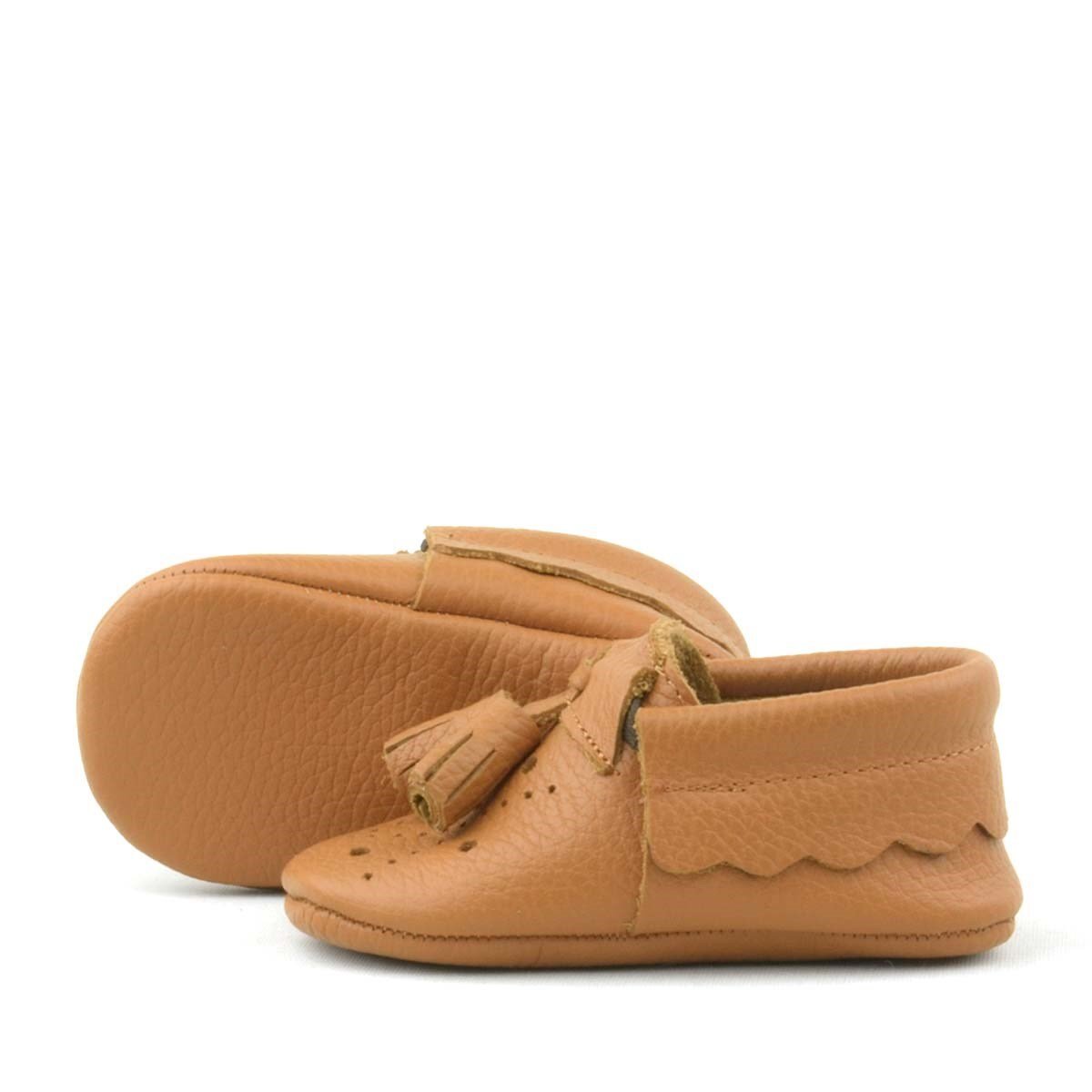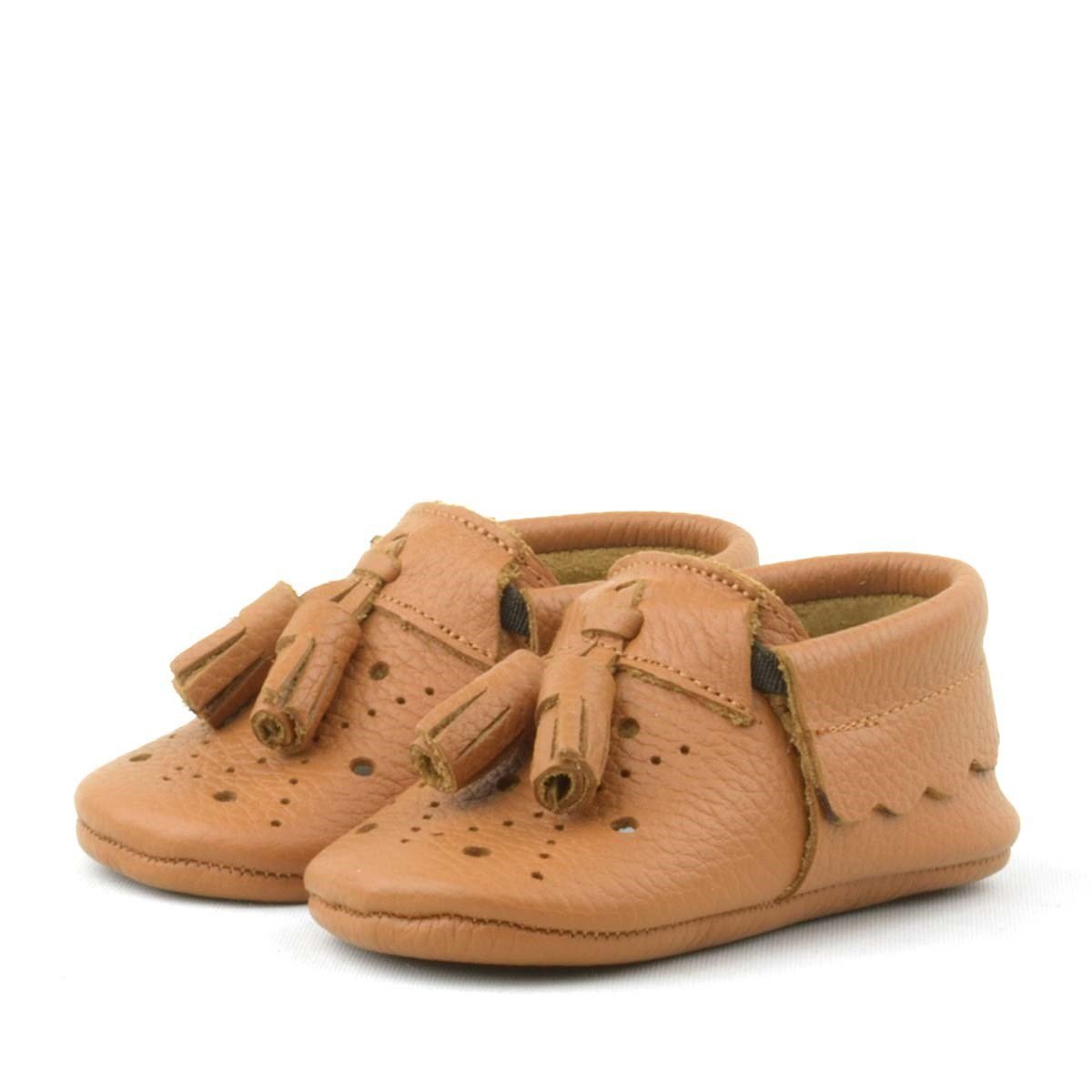 حذاء بيبي بيبا المصنوع من الجلد الطبيعي والمرن والمزين بشراشيب