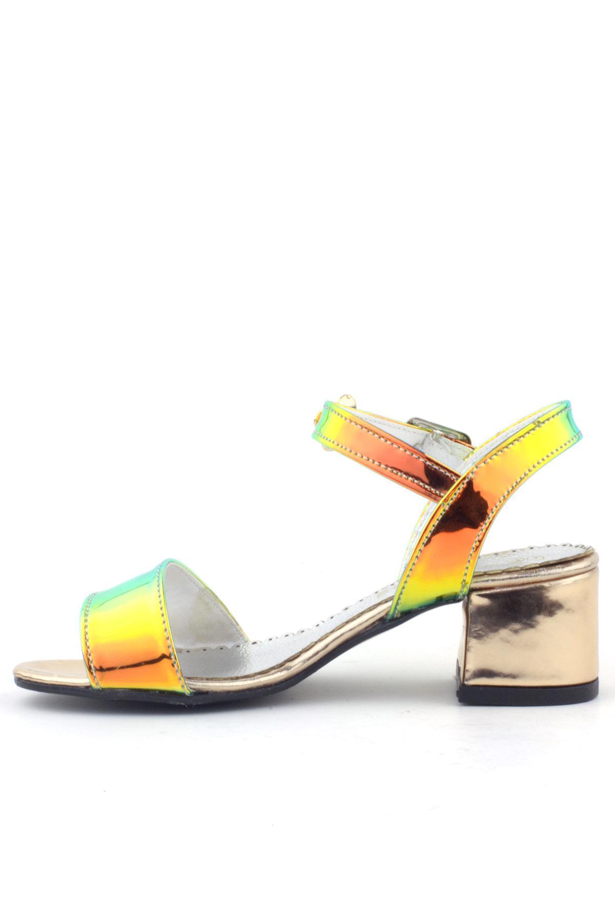 Betty Bakır Taşlı Kısa Topuklu Kız Çocuk Topuklu Ayakkabı
