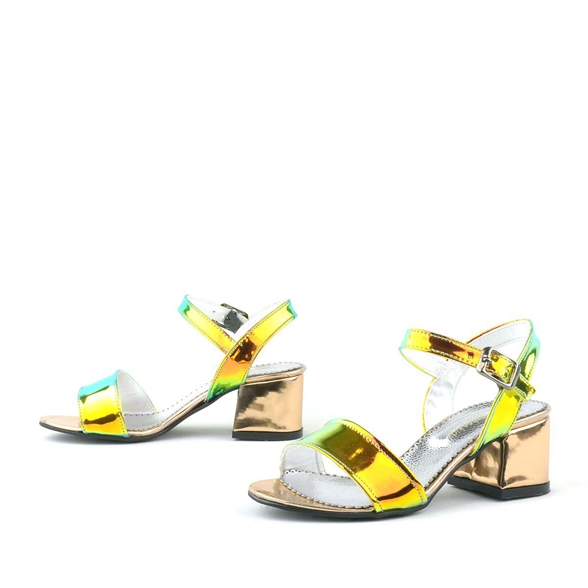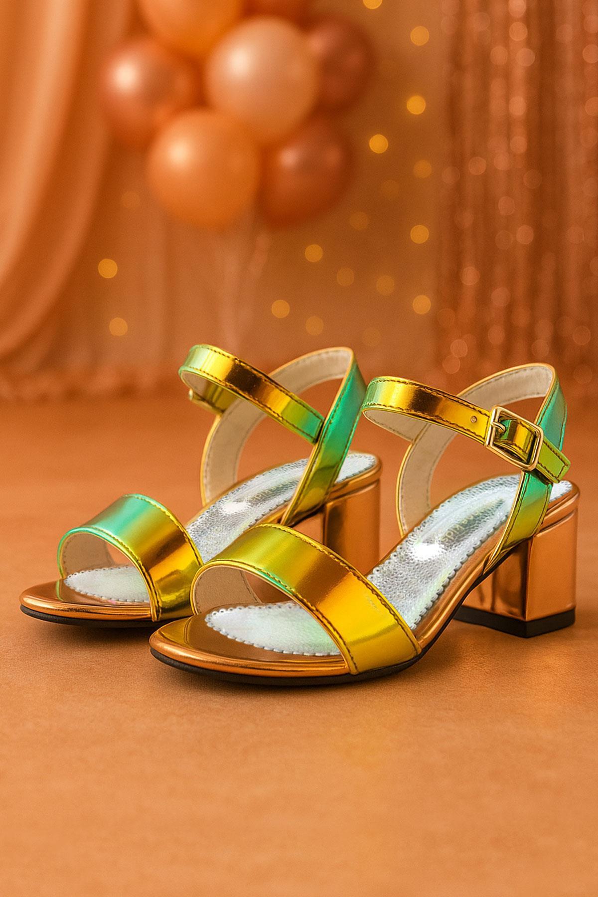 حذاء سهرة بناتي بكعب سميك بلون أخضر نحاسي مجسم